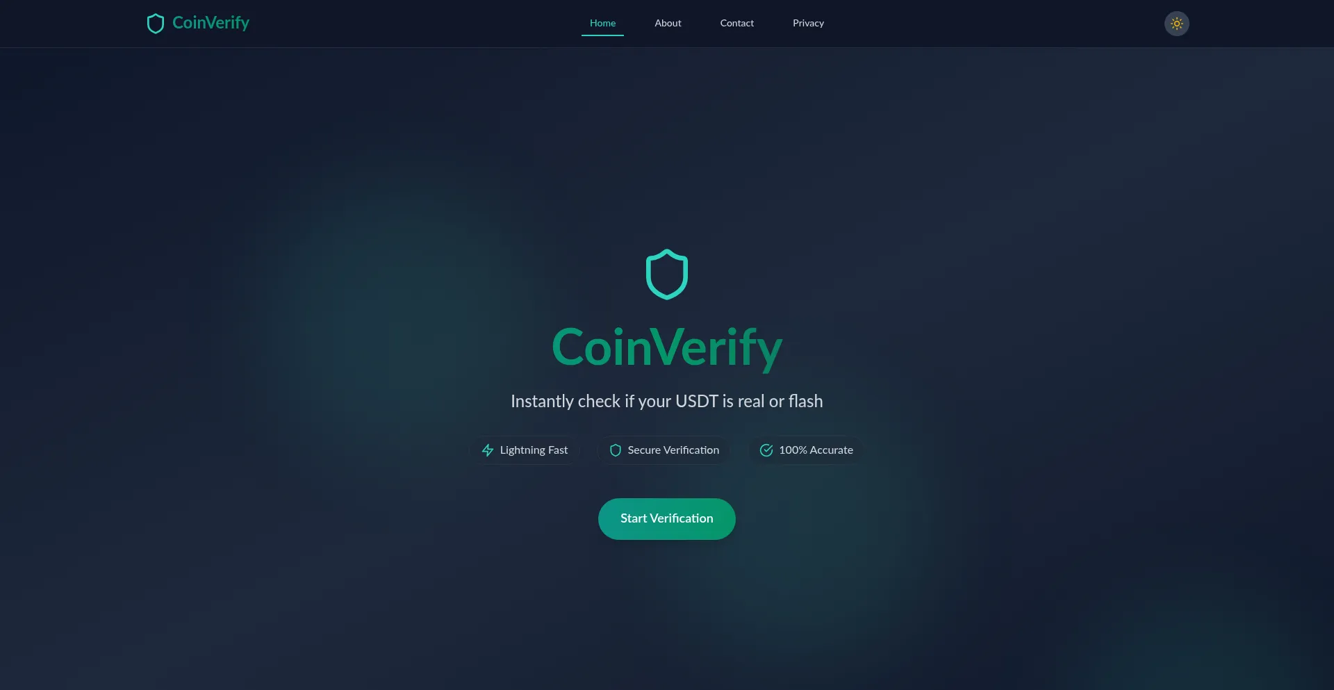 CoinVerify - Instantly verify if your USDT is real or flash. Fast, secure, and reliable verification for Tron and BEP-20 networks.