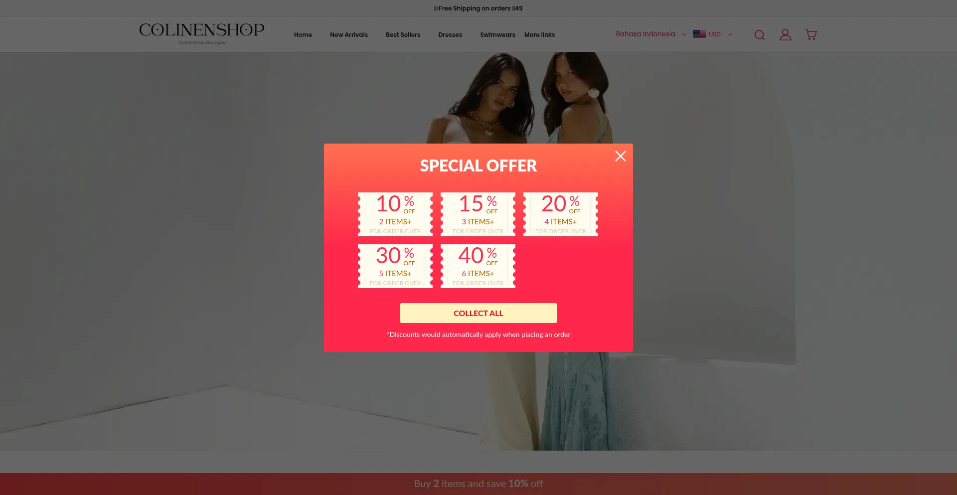 该网站实现数据收集表单,请求个人信息,包括姓名、电子邮件地址、电话号码或其他敏感详细信息。用户应验证 colinenshop.com 的合法性并在提交个人数据前查看隐私政策。
