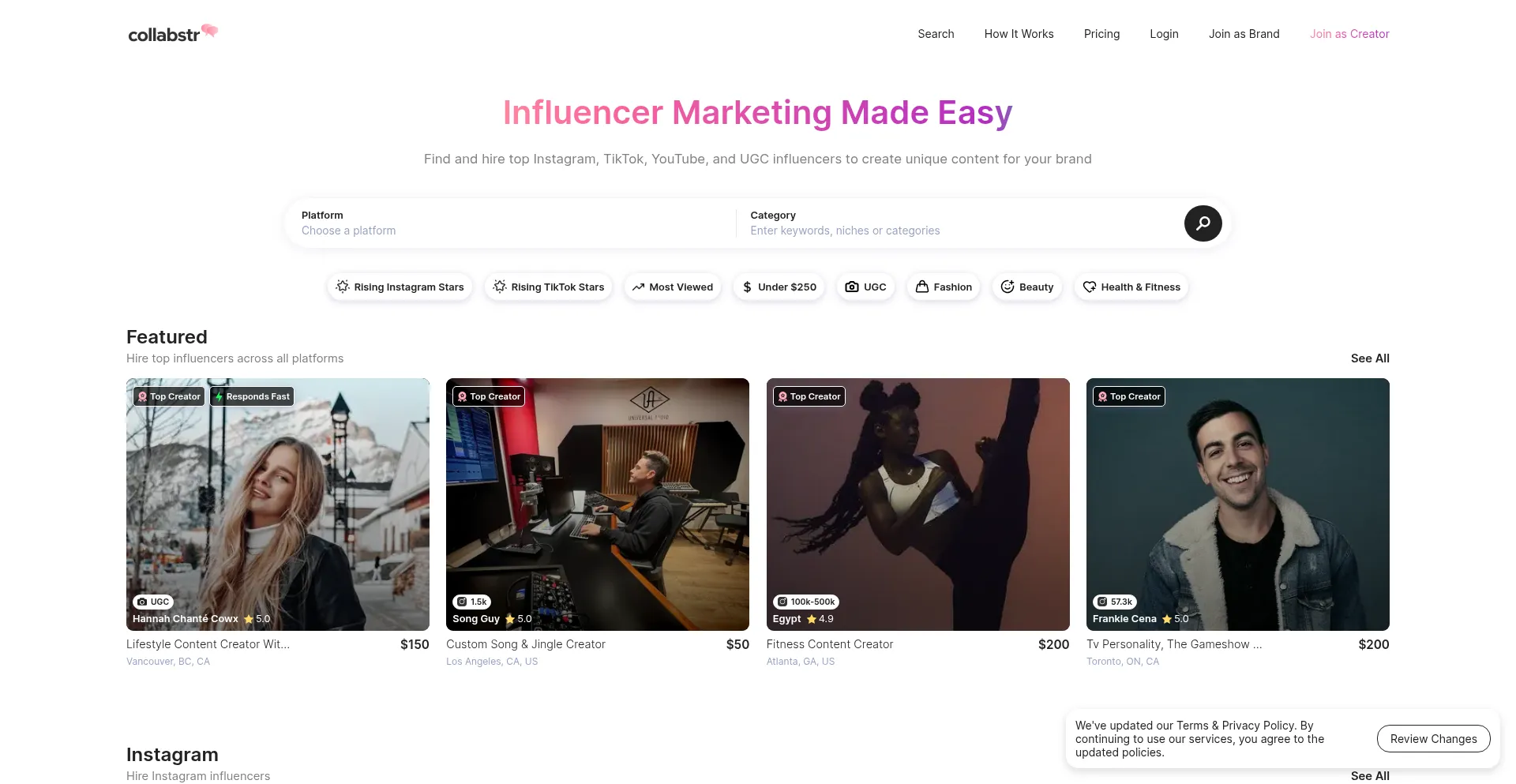 Find and hire Instagram influencers , TikTok influencers, YouTube influencers and UGC creators. World's largest influencer marketplace.