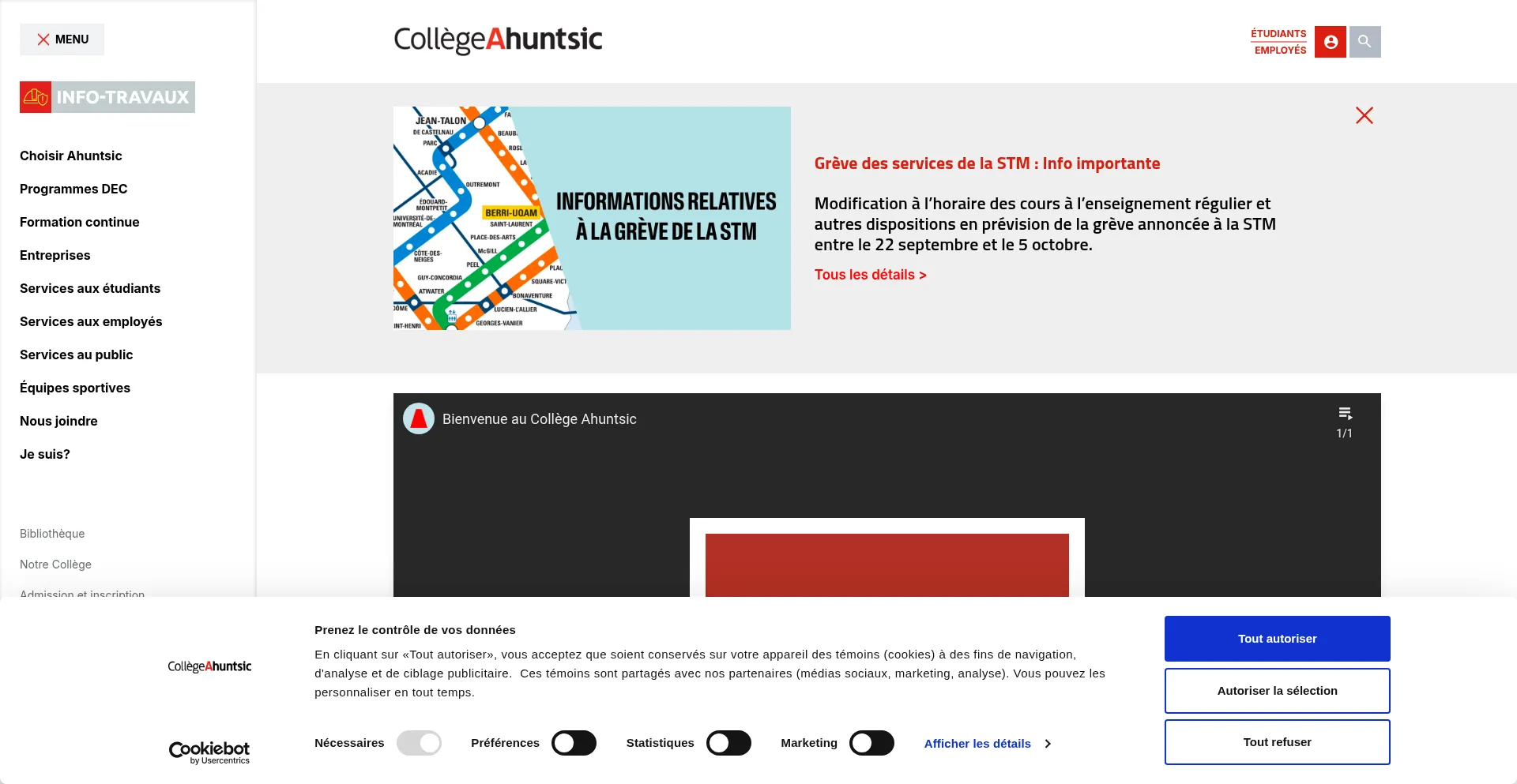 该网站实现符合GDPR或CCPA等隐私法规的cookie同意机制。这表明 collegeahuntsic.qc.ca 遵守数据保护标准并为用户提供对个人数据收集实践的控制。
