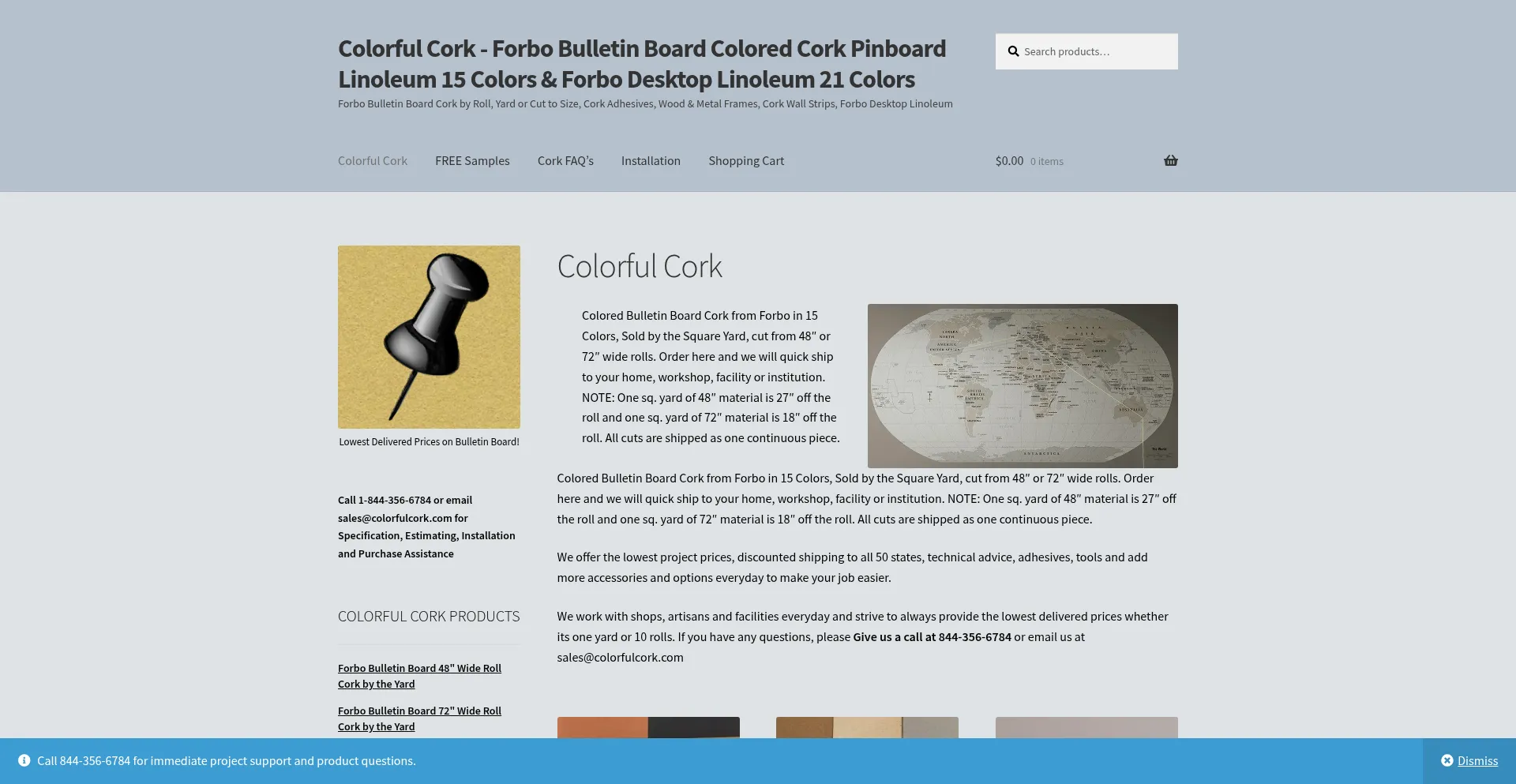 Cut Sq. Yd. or 90 ft. Roll, Colorful Cork ships Forbo Tackable Surface Bulletin Board Colored Cork 15 colors 48" wide and 3 colors 72" wide.