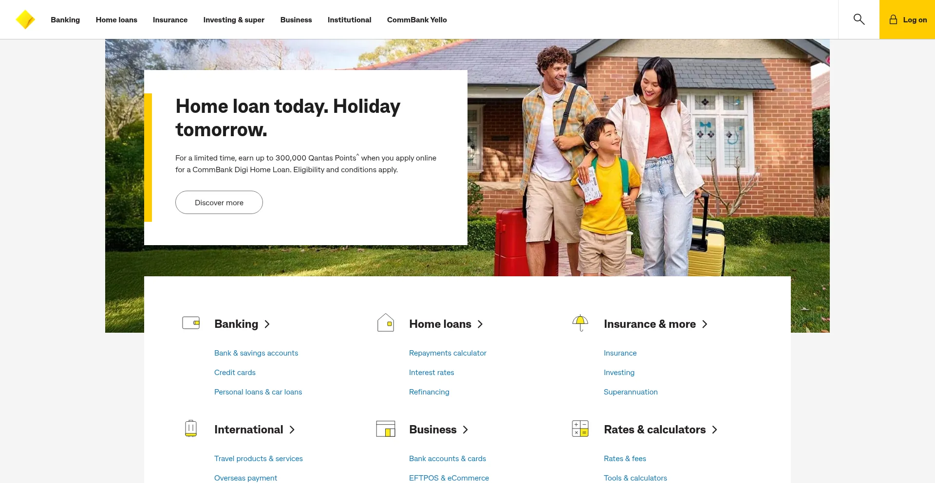 CommBank offers personal banking, business solutions, institutional banking, company information, and more