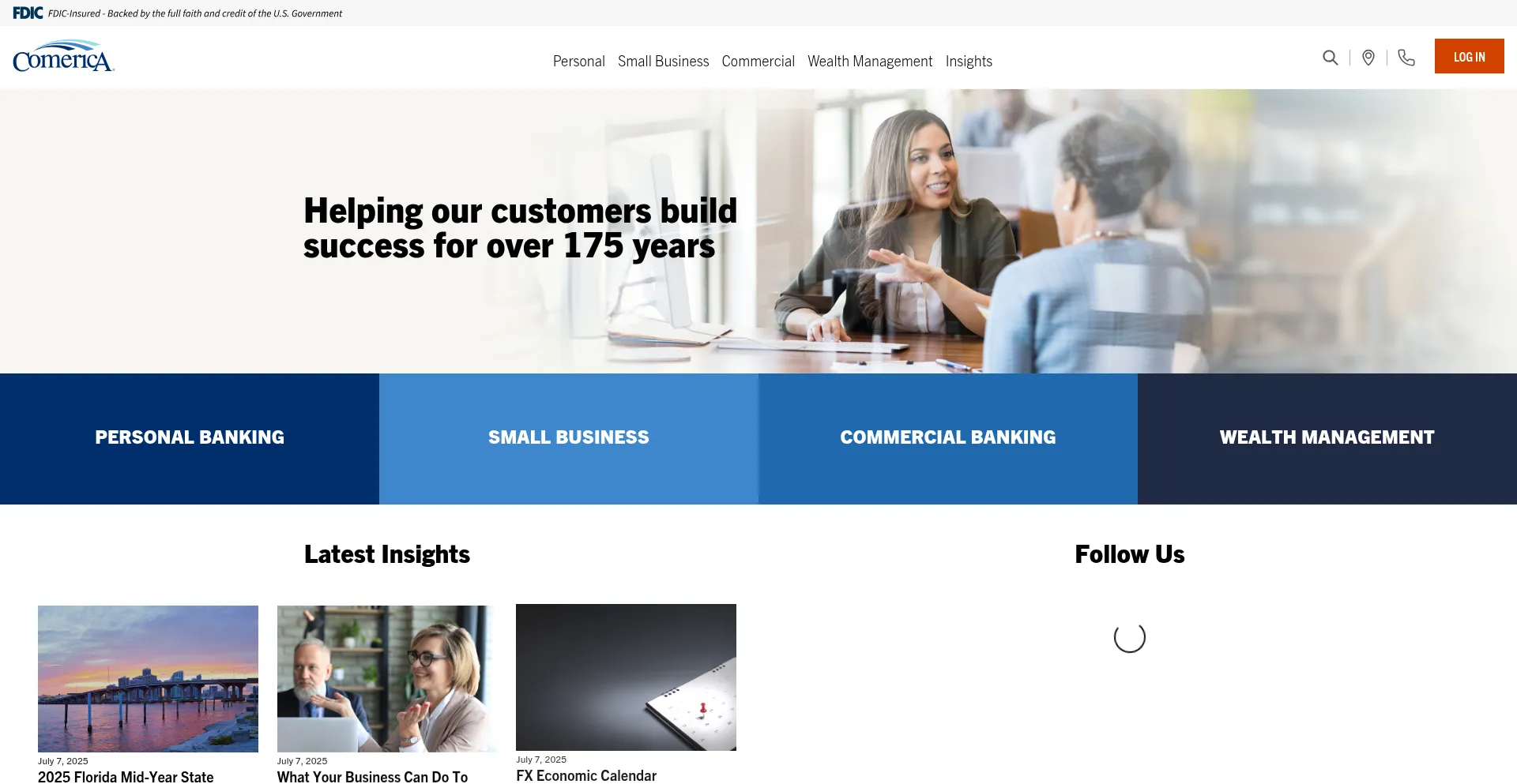 网站上存在社交媒体链接表明 comerica.com 在社交媒体上维护官方账户,这是可信度和参与度的积极信号。