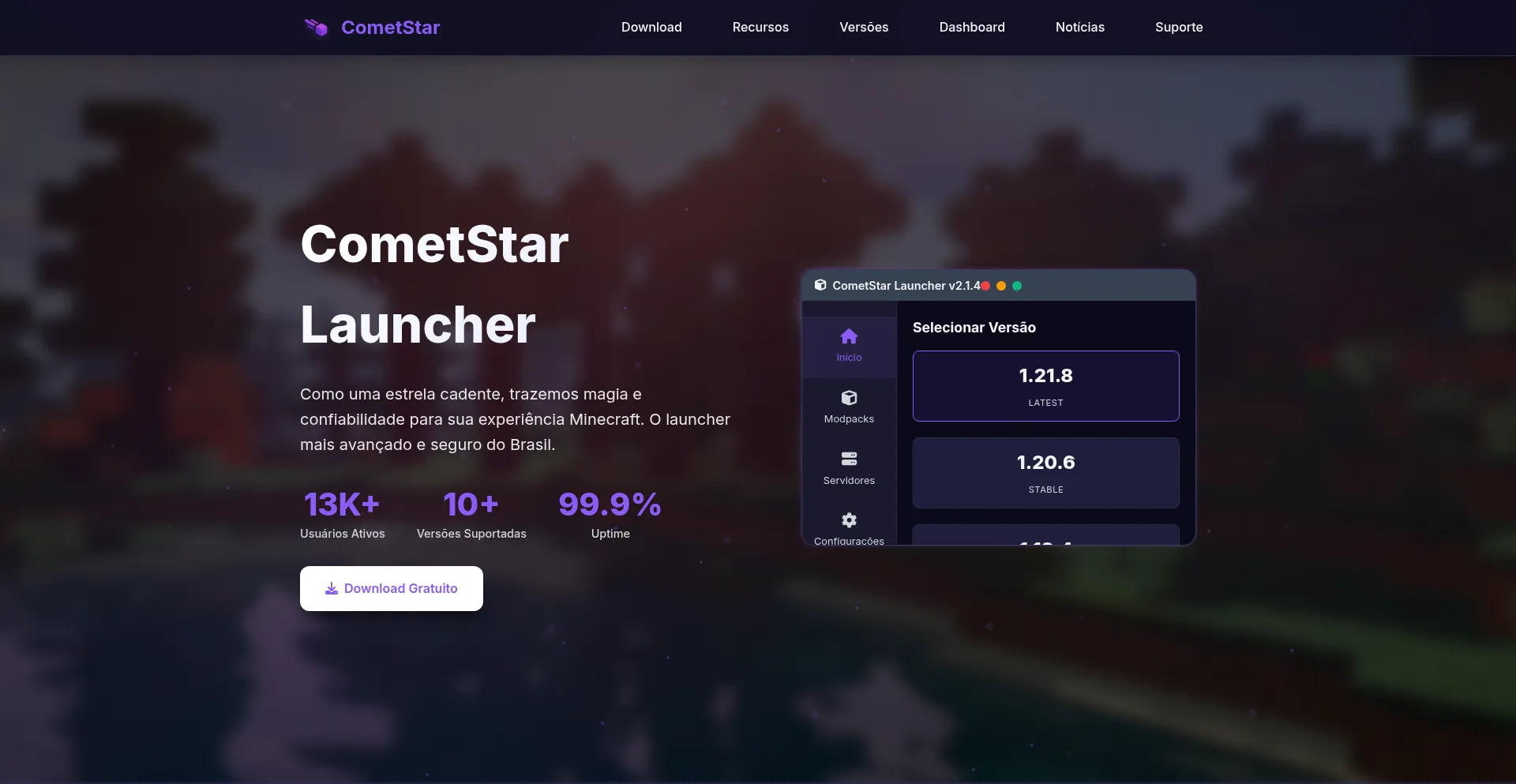 O launcher mais avançado para Minecraft. Suporte a múltiplas versões, modpacks personalizados, mundos online e muito mais. 100% gratuito e confiável.