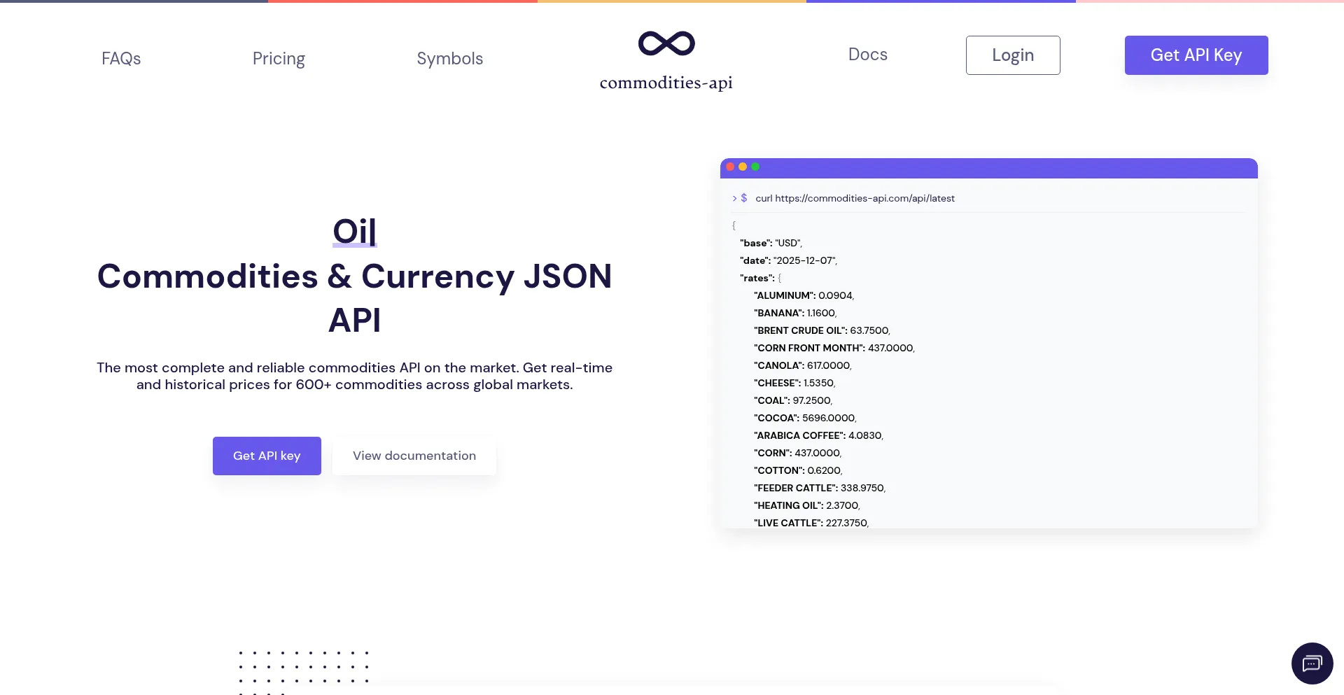 Commodities-API provides a free, simple, and lightweight API for current and historical Commodities rates and currency conversion.