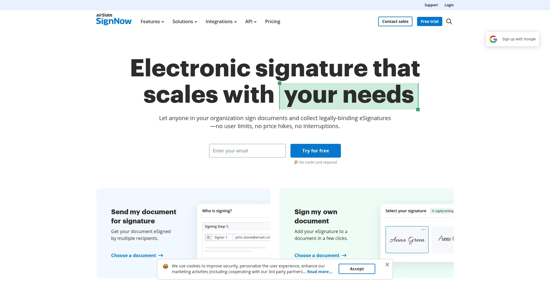 Sign documents with airSlate SignNow’s legally-binding eSignature trusted by millions. Enjoy a seamless online signature experience anytime, anywhere, on any device.
