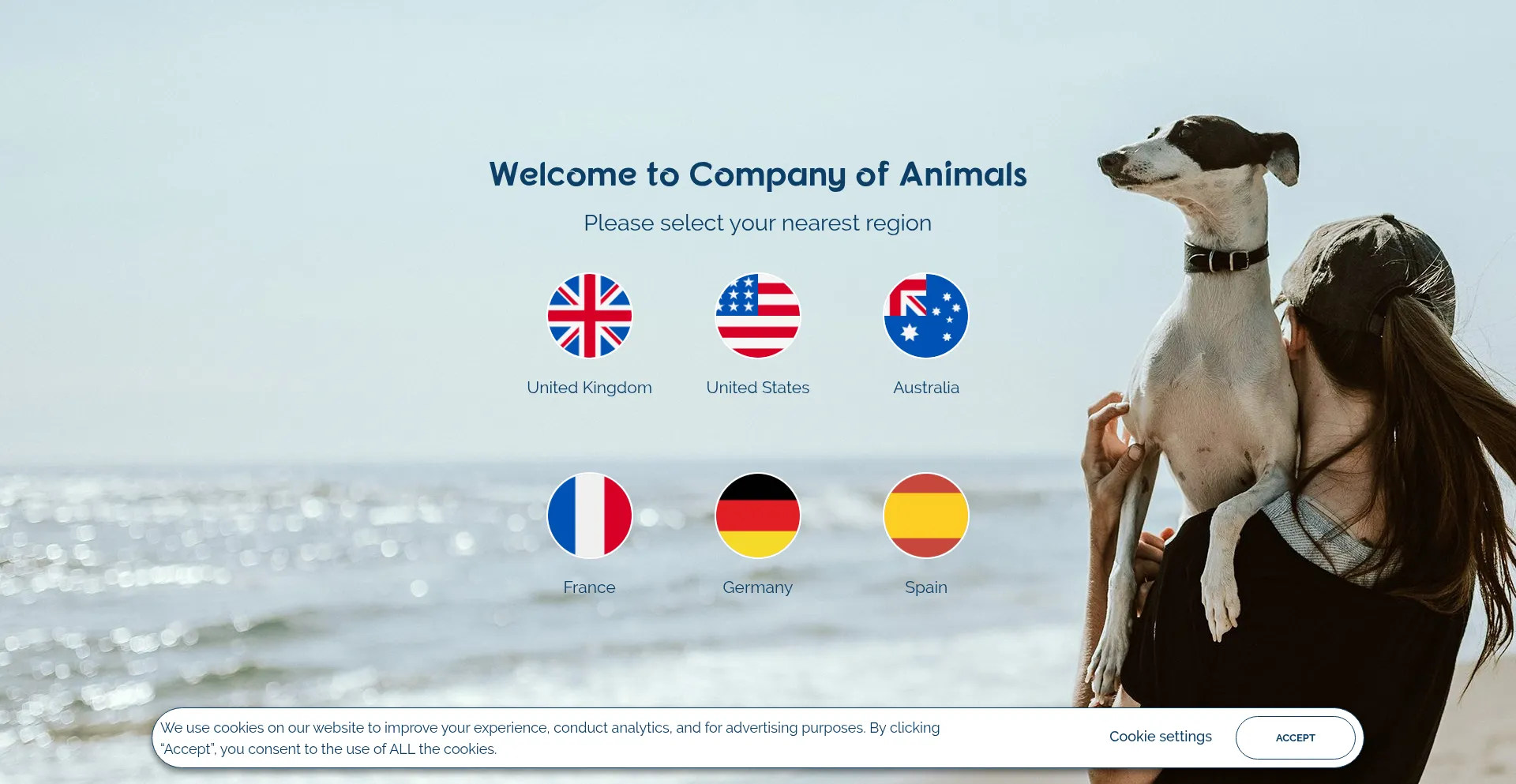 该网站实现符合GDPR或CCPA等隐私法规的cookie同意机制。这表明 companyofanimals.com 遵守数据保护标准并为用户提供对个人数据收集实践的控制。