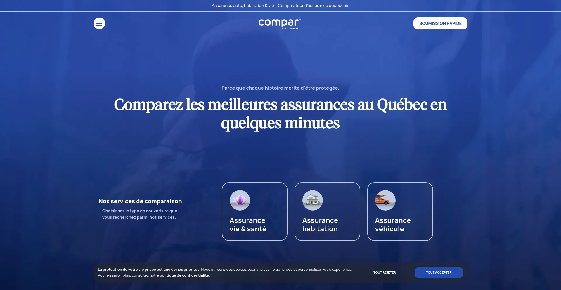 Comparez et économisez sur vos assurances auto, habitation et vie au Québec grâce à un service simple, gratuit, rapide, sécuritaire et sans engagement.