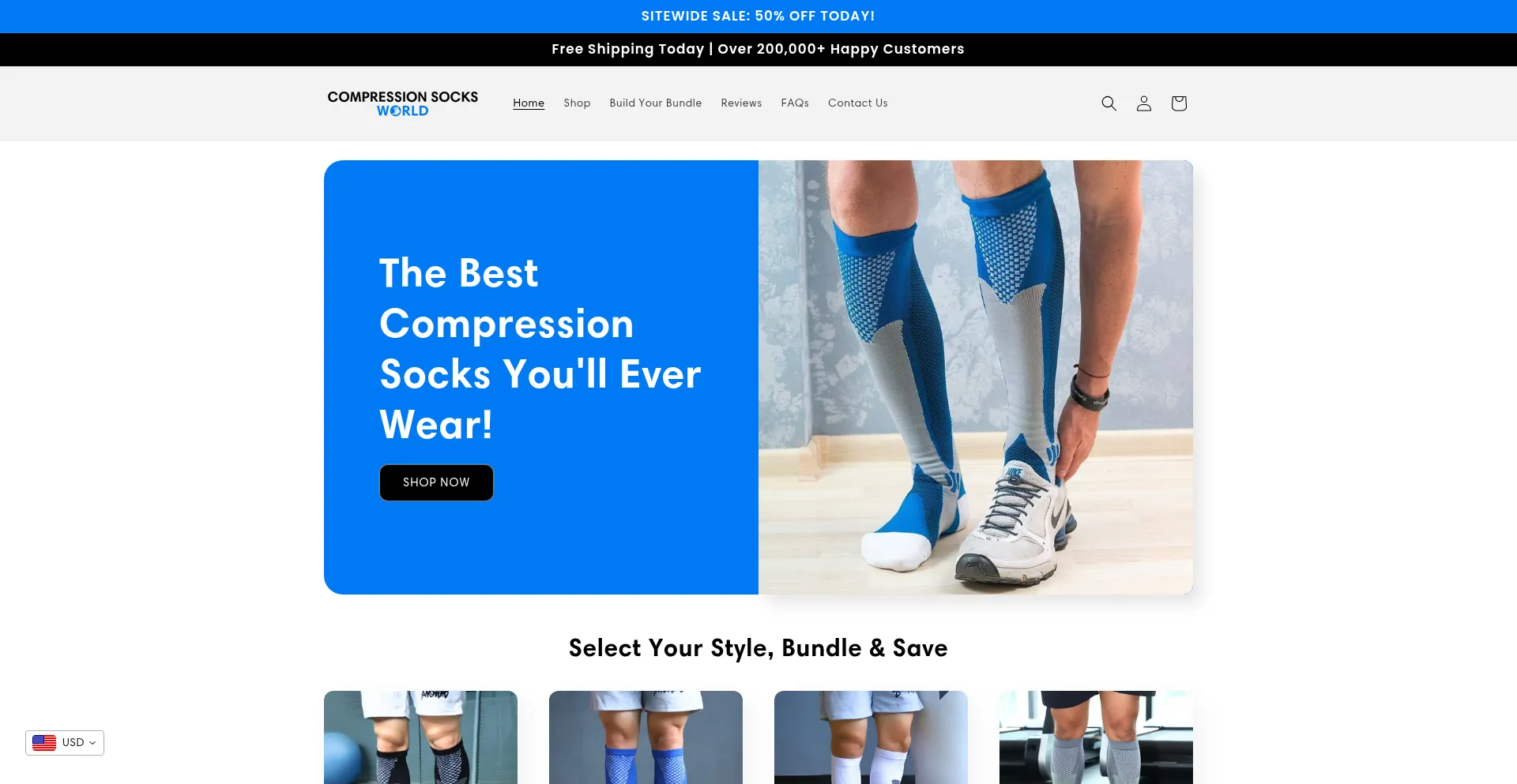 分析表明 compressionsocksworld.com 作为电子商务平台运营,促进商品或服务的在线交易。该网站实现了购物车功能、支付处理系统和产品目录功能,这些是商业零售运营的典型特征。