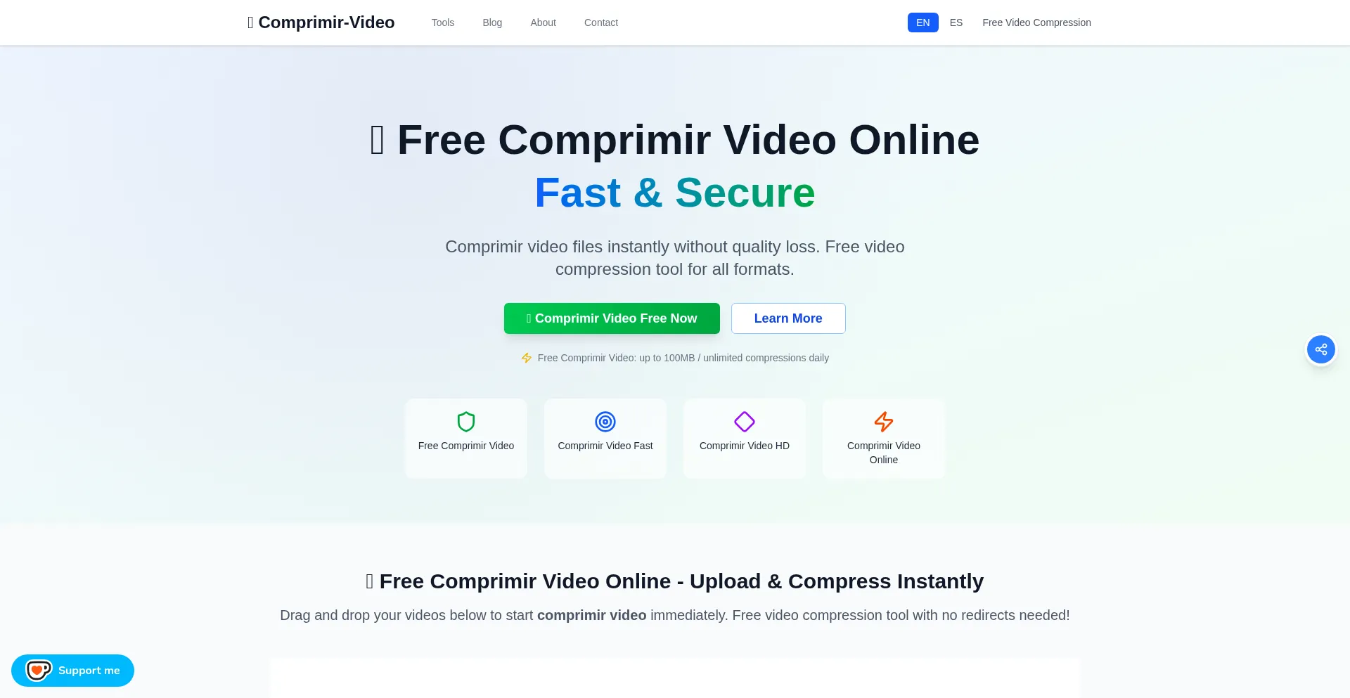 Free comprimir video online tool. Compress videos instantly without quality loss. Comprimir video files for YouTube, TikTok, Instagram. No registration required.