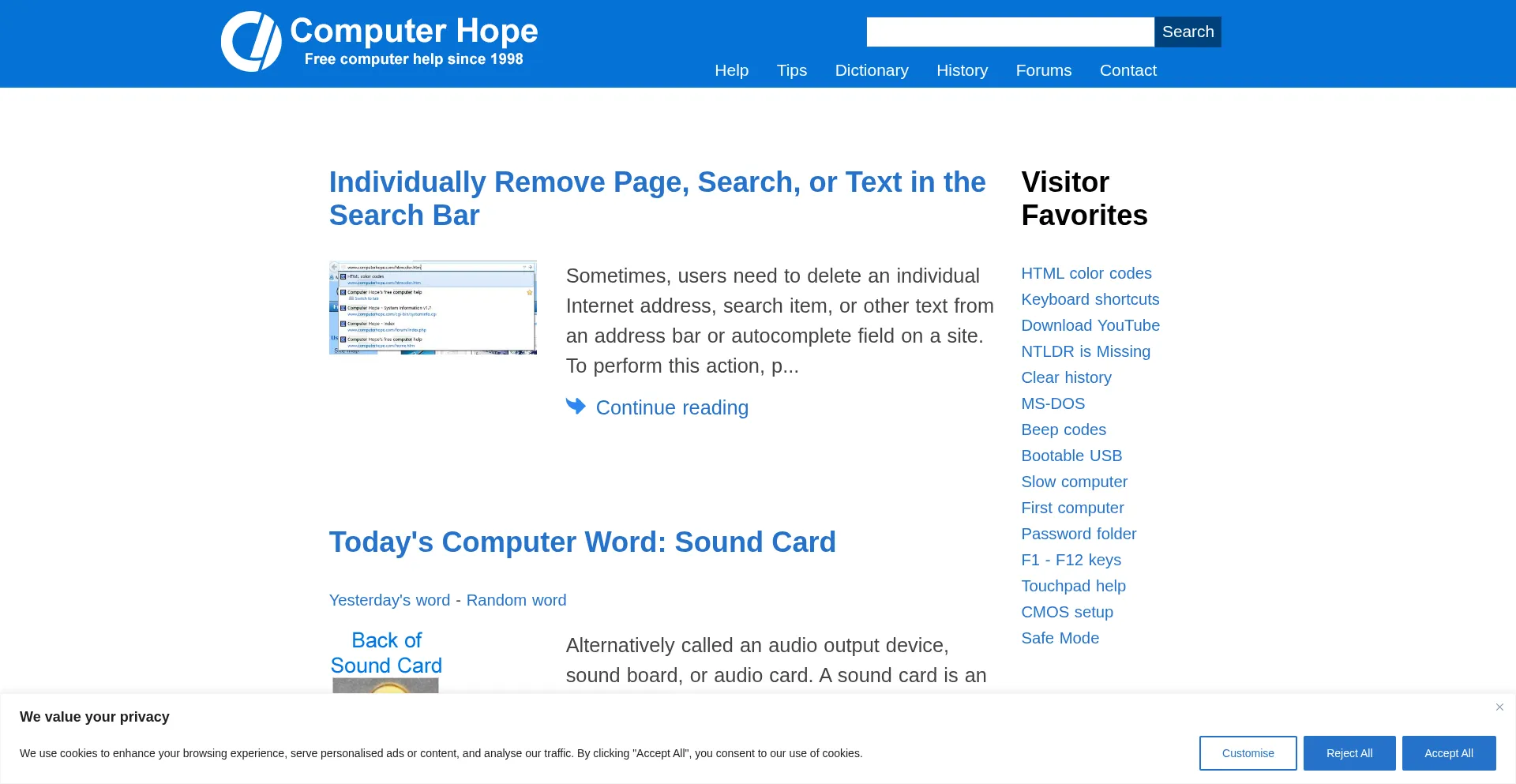 该网站实现符合GDPR或CCPA等隐私法规的cookie同意机制。这表明 computerhope.com 遵守数据保护标准并为用户提供对个人数据收集实践的控制。
