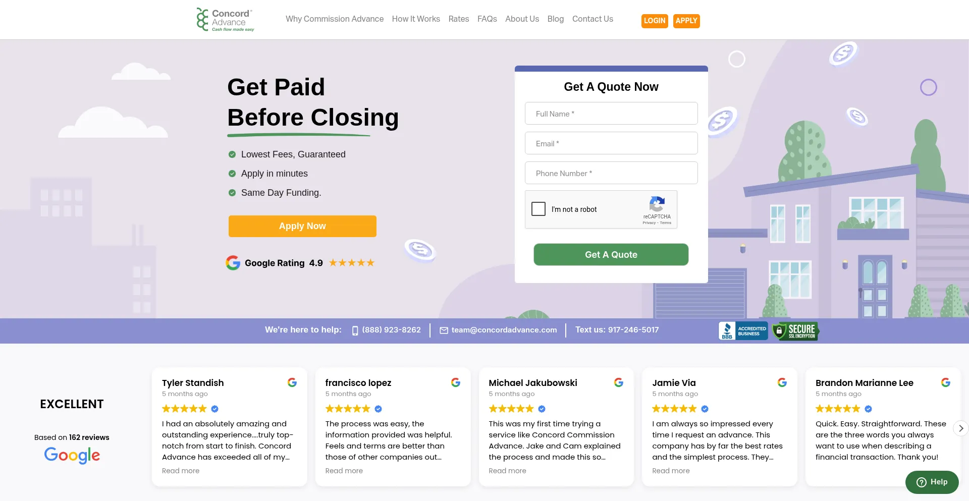 Don’t let the wait for commission payments stop you from growing your real estate business! Concord Commission Advance is here to solve your cash flow problems.