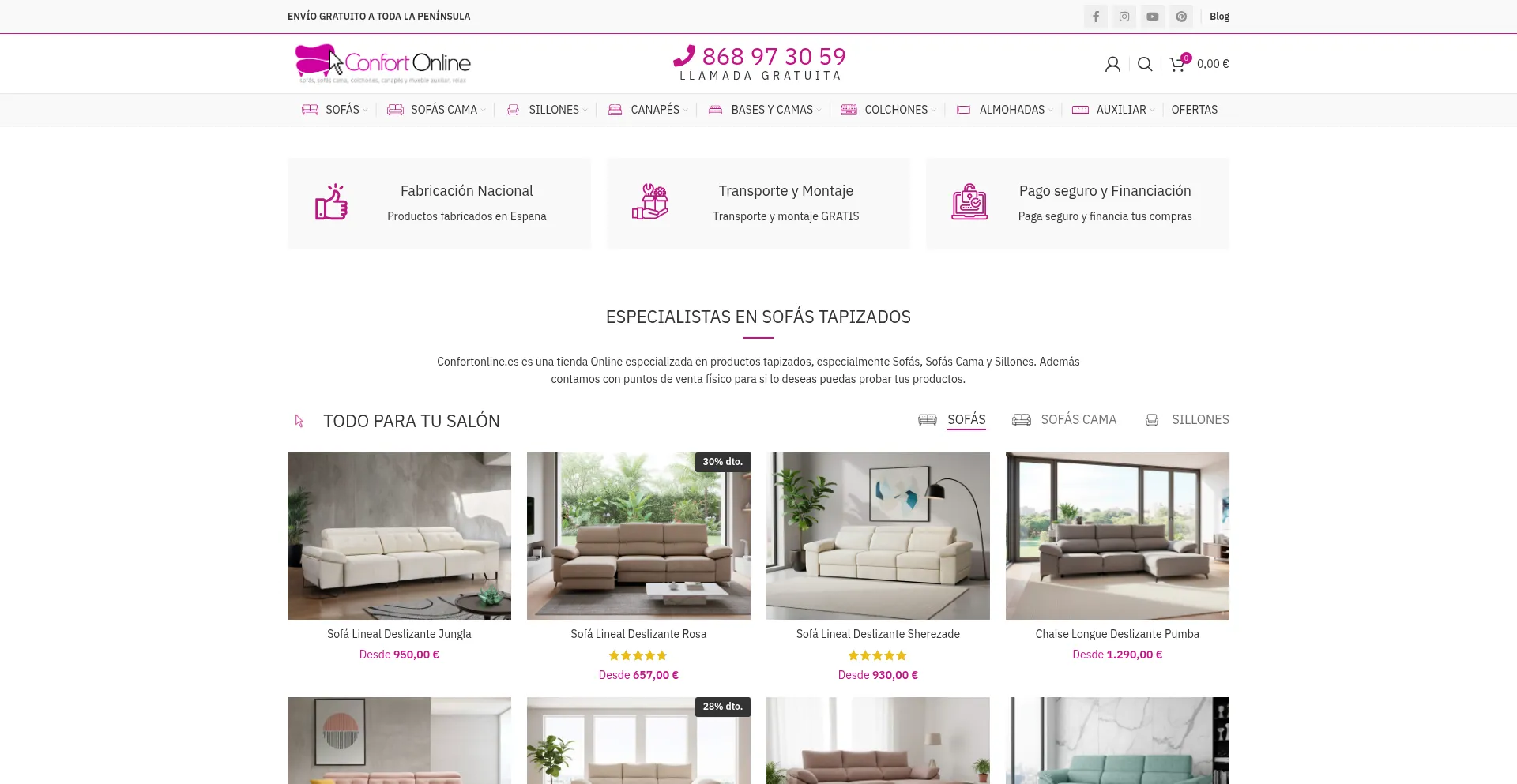En Confort Online encontrarás una gran colección de Canapés y Sofás de Calidad con gran cantidad de medidas y opciones