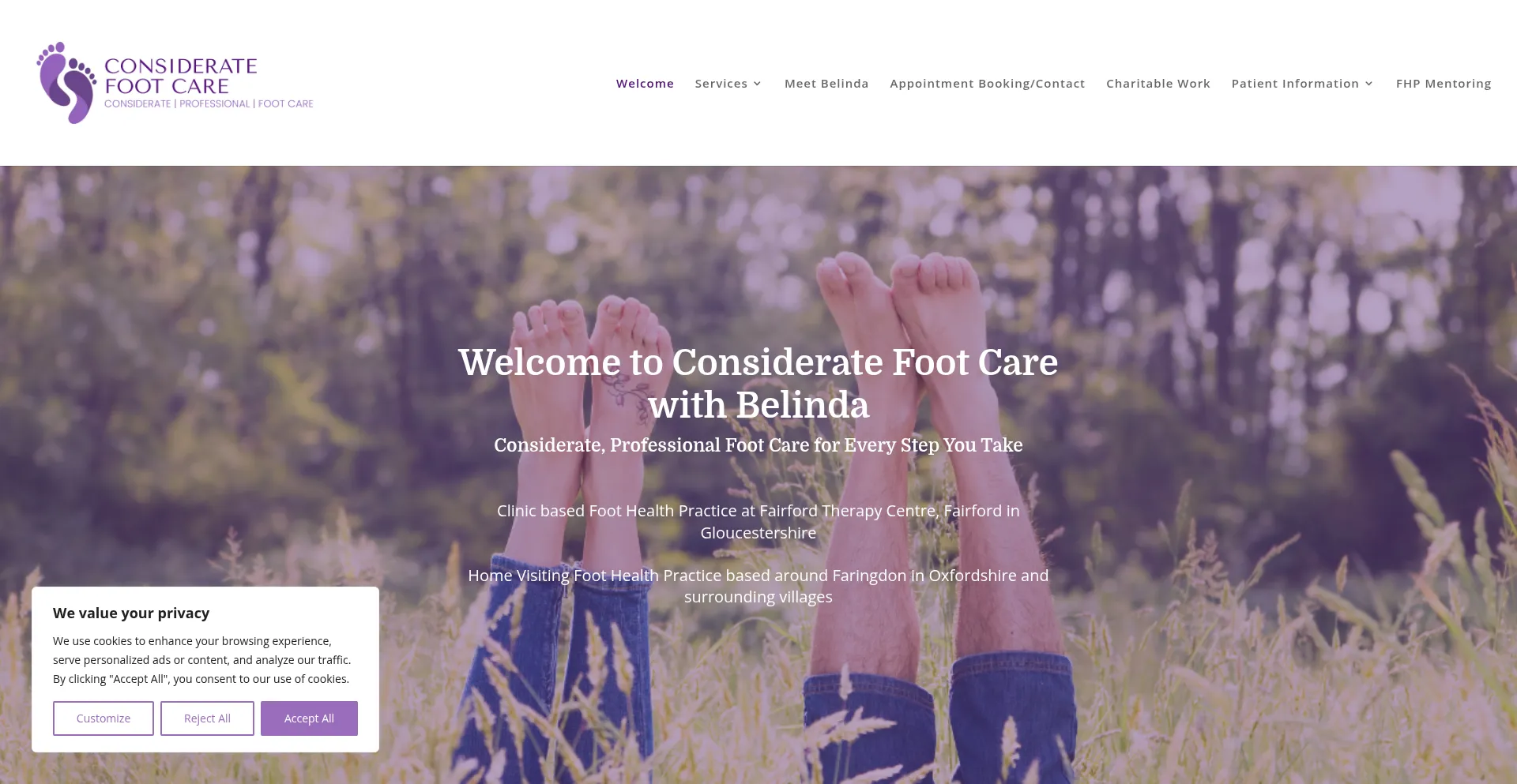 该网站实现符合GDPR或CCPA等隐私法规的cookie同意机制。这表明 consideratefootcare.com 遵守数据保护标准并为用户提供对个人数据收集实践的控制。