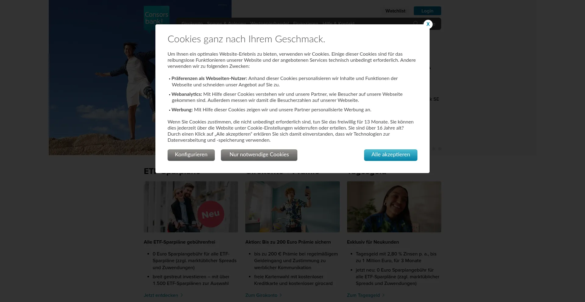 Entdecken Sie die Consorsbank, Ihre moderne Direktbank für Girokonten, Geldanlagen und mehr. Wir bieten verlässlichen Service und die passenden Apps.