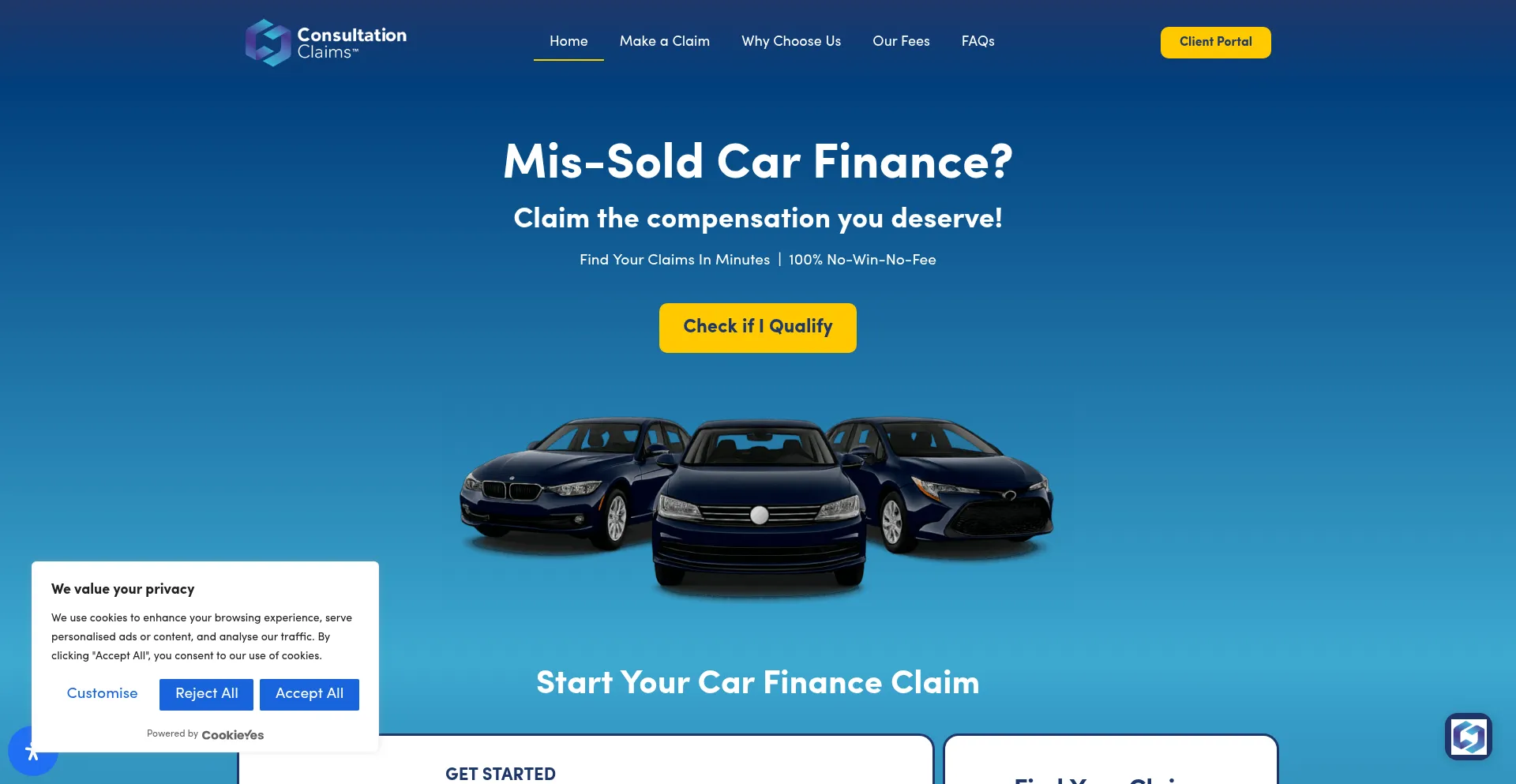该网站实现符合GDPR或CCPA等隐私法规的cookie同意机制。这表明 consultationclaims.co.uk 遵守数据保护标准并为用户提供对个人数据收集实践的控制。