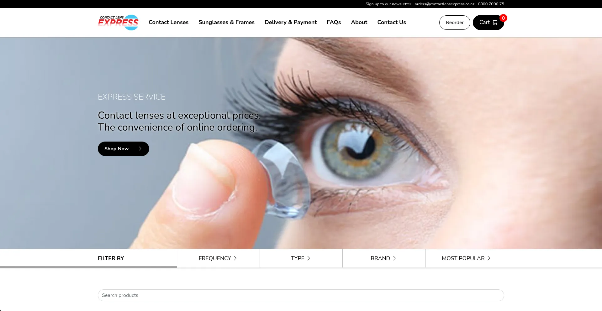 contactlensexpress.co.nz 使用 Bootstrap,这是一个广泛采用的开源响应式网页开发框架。Bootstrap 通过标准化组件和样式实现移动友好界面的高效创建。