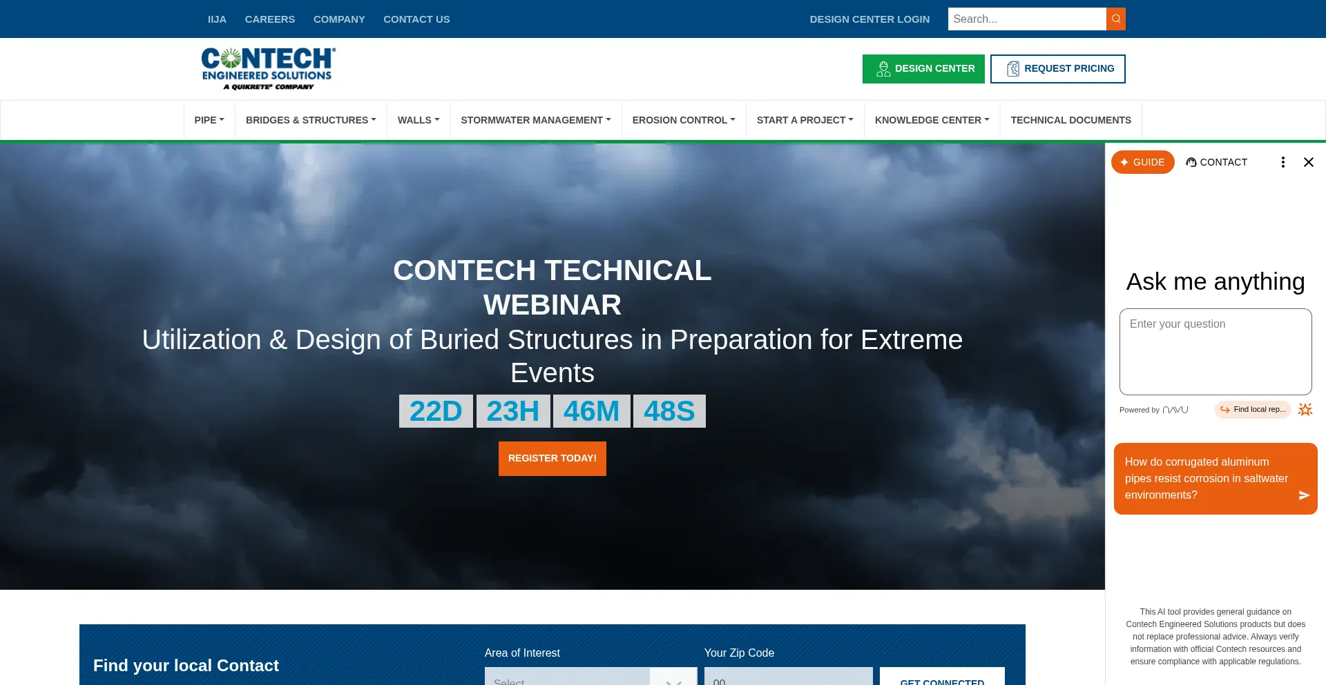 Contech, site solutions, bridge structures, drainage, storm sewer, storm drain, sanitary sewer pipe, stormwater management, erosion control, retaining walls.