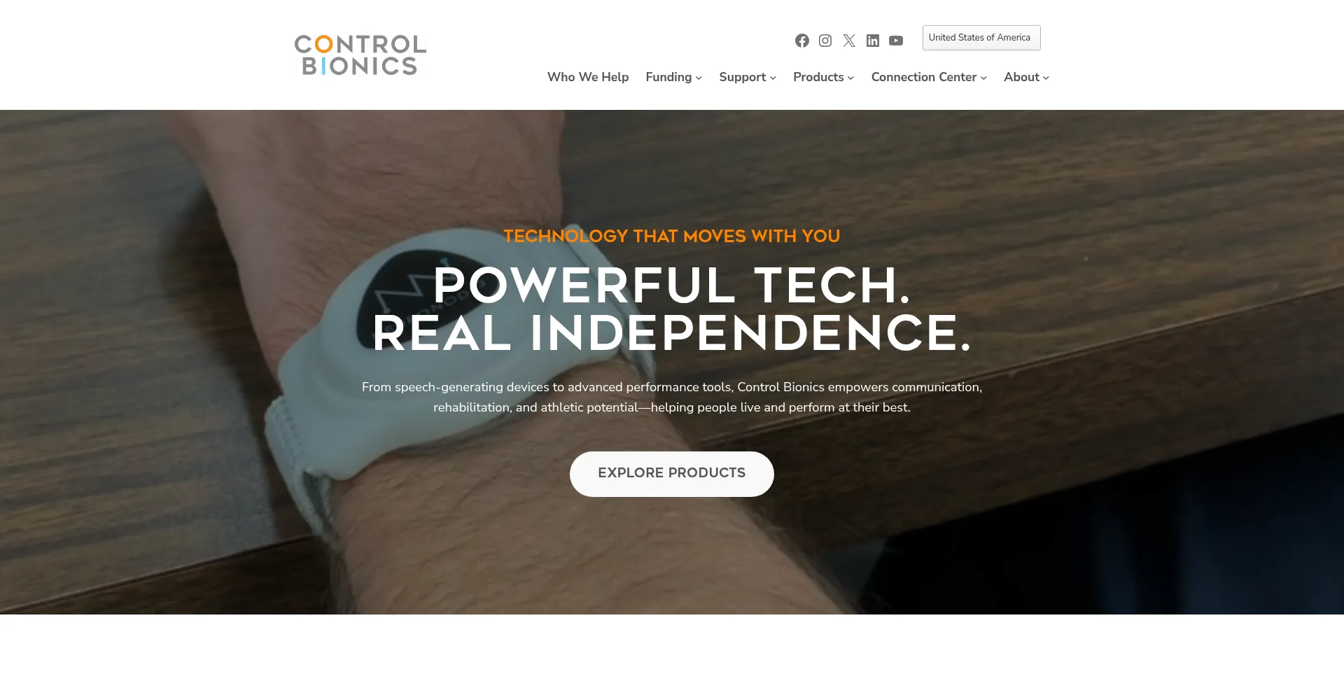 网站上存在社交媒体链接表明 controlbionics.com 在社交媒体上维护官方账户,这是可信度和参与度的积极信号。
