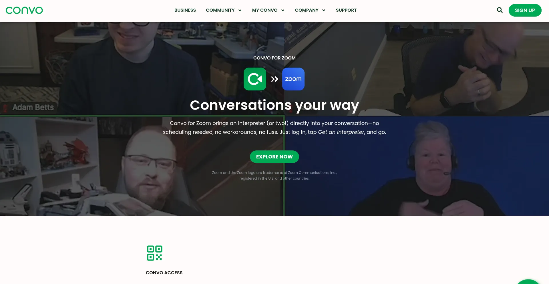 Access starts with Convo, an intuitive on-demand interpreting service offering Video Remote Interpreting (VRI) & Video Relay Service (VRS).