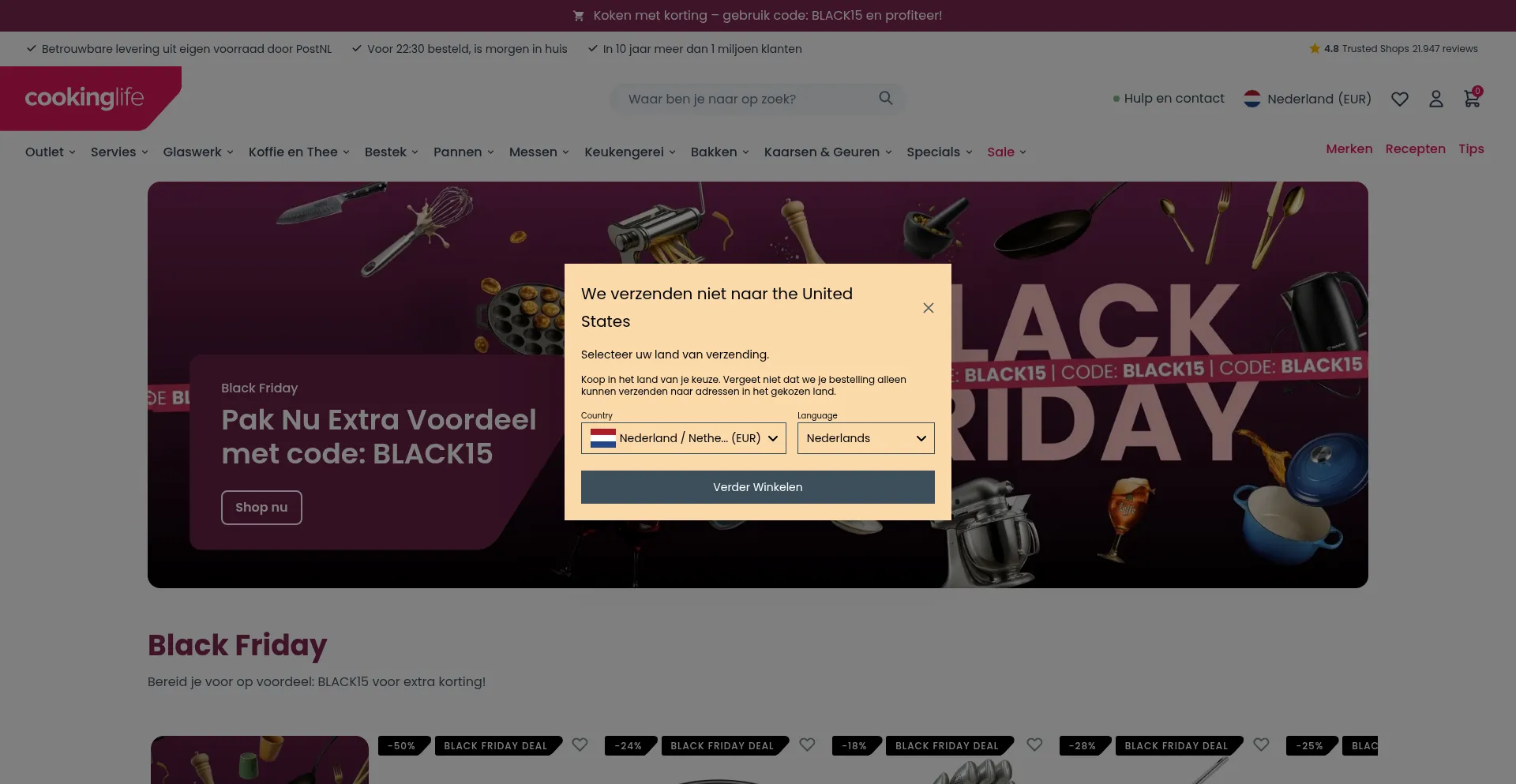 Online Kookwinkel Cookinglife & 2 winkels, A-merken morgen in huis