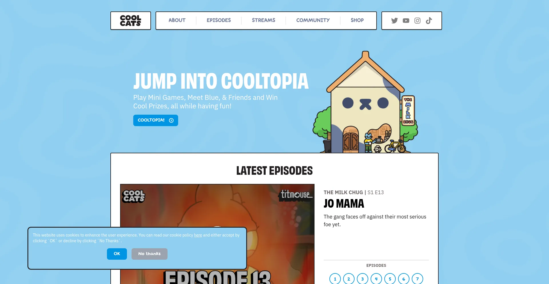 Welcome to the official website for Cool Cats. Discover Blue Cat and his friends, shop for merch, watch fun animations, and learn more about Cool Cats today.