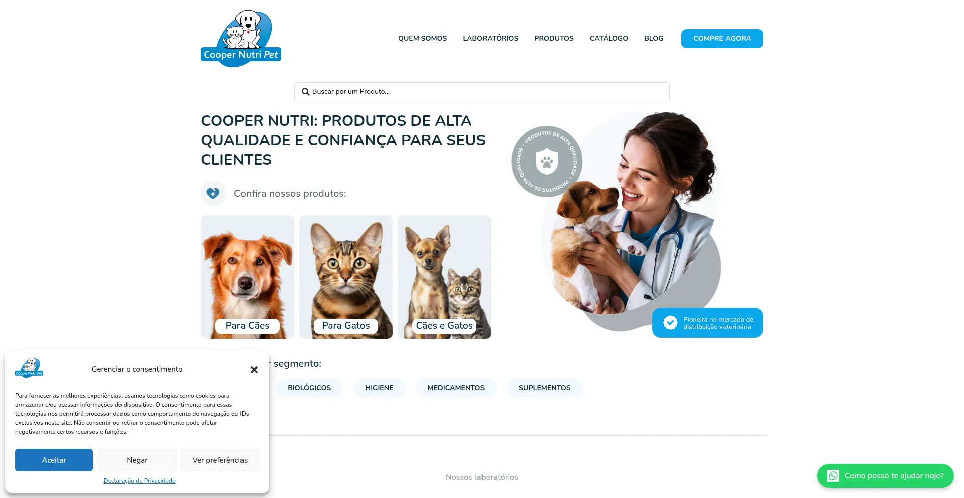 Distribuidora de produtos veterinários desde 1989. Vacinas e biológicos para clínicas e pet shops. Qualidade garantida: Cooper Nutri Pet.