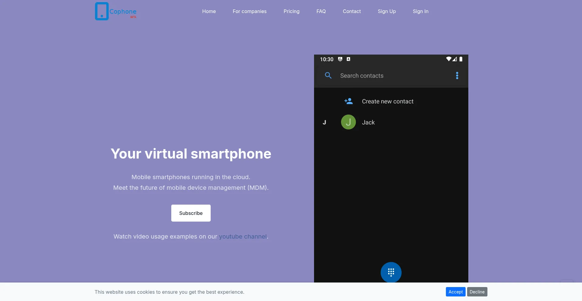 Your virtual smartphone. cophone is a virtual smartphone solution, accessible anywhere, anytime, from any device with an internet connection.