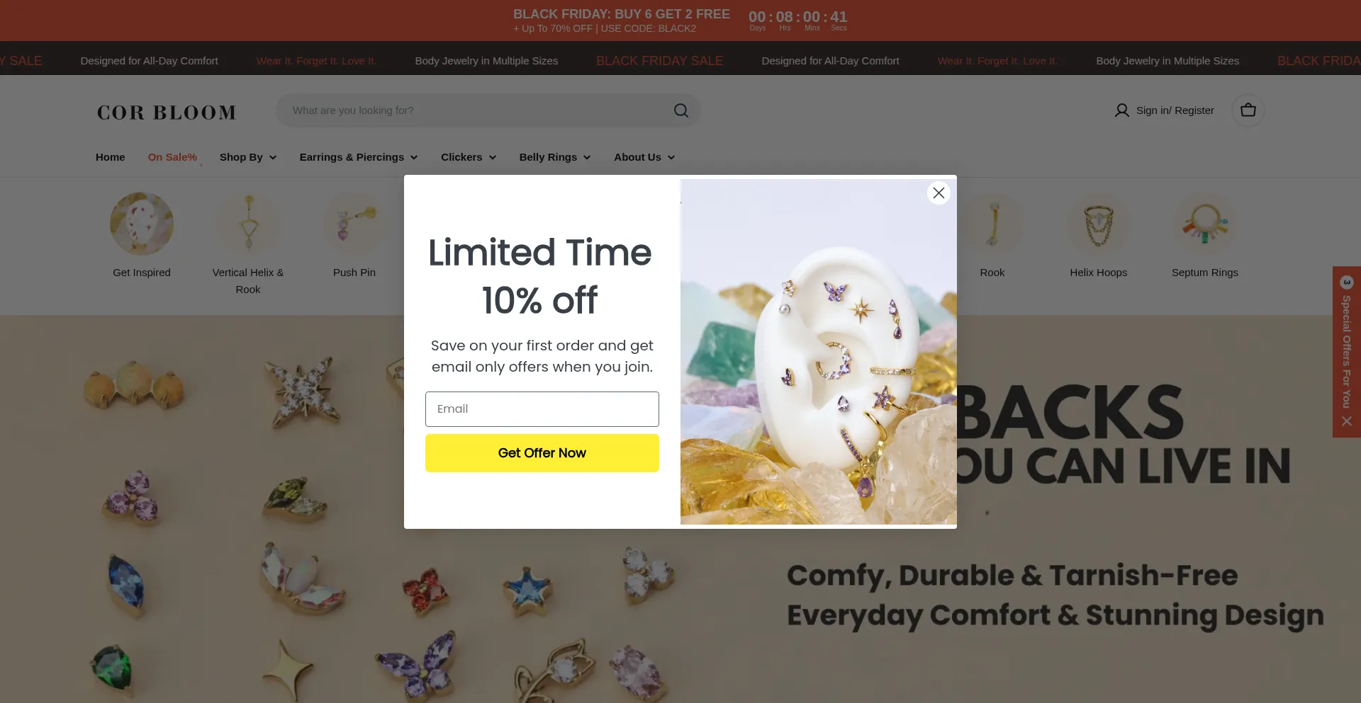 该网站利用流行产品名称和品牌来吸引流量并产生用户兴趣。这些产品可能通过促销活动或折扣策略提供,旨在增加 corbloomjewelry.com 的访客参与度和转化率。