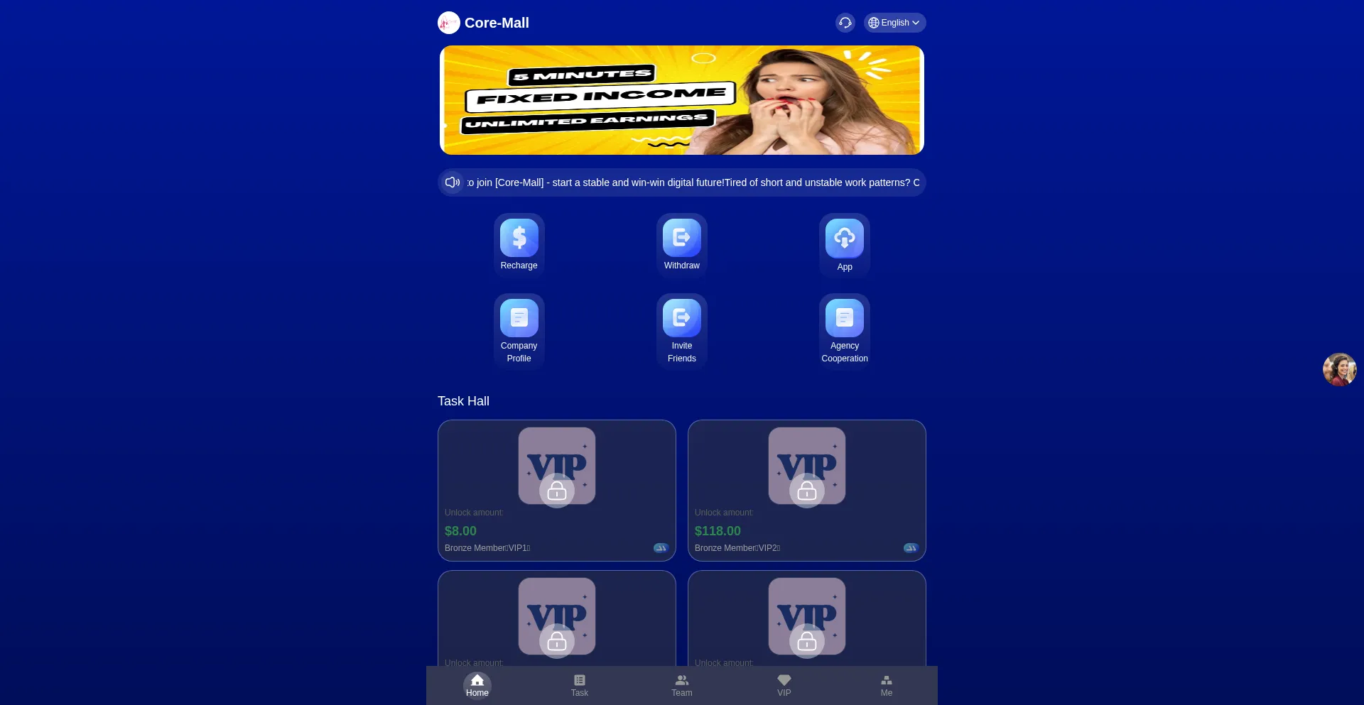 Core-mall.com 运营欺诈性金融平台,推广具有不现实回报承诺的欺骗性投资机会。安全分析表明该平台采用与 庞氏骗局 和预付费欺诈一致的策略,旨在提取用户资金和个人信息。