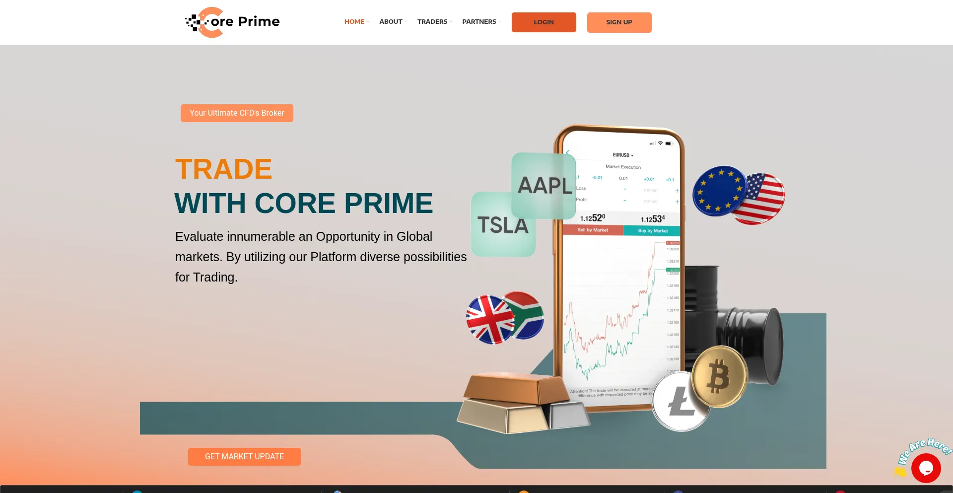 该网站实现数据收集表单,请求个人信息,包括姓名、电子邮件地址、电话号码或其他敏感详细信息。用户应验证 coreprimemarkets.com 的合法性并在提交个人数据前查看隐私政策。