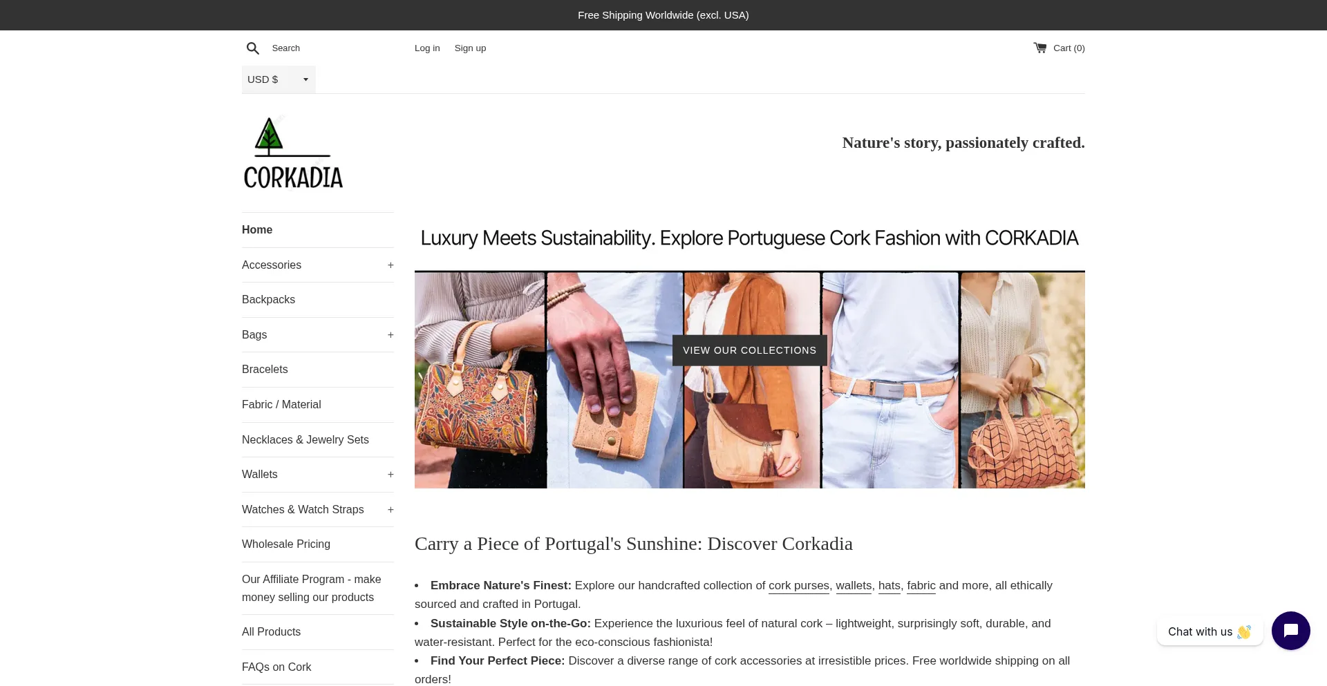 Cork bags, belts, fabric, wallets, watches & more. Ethically sourced, vegan, and handcrafted in Portugal. Free shipping worldwide.
