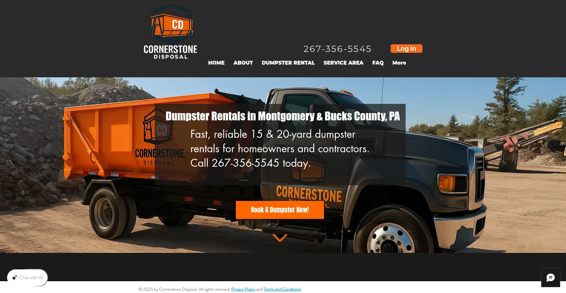 Reliable 15- and 20-yard dumpster rentals in Bucks and Montgomery County. Cornerstone Disposal offers fast delivery, transparent pricing, and easy online booking.