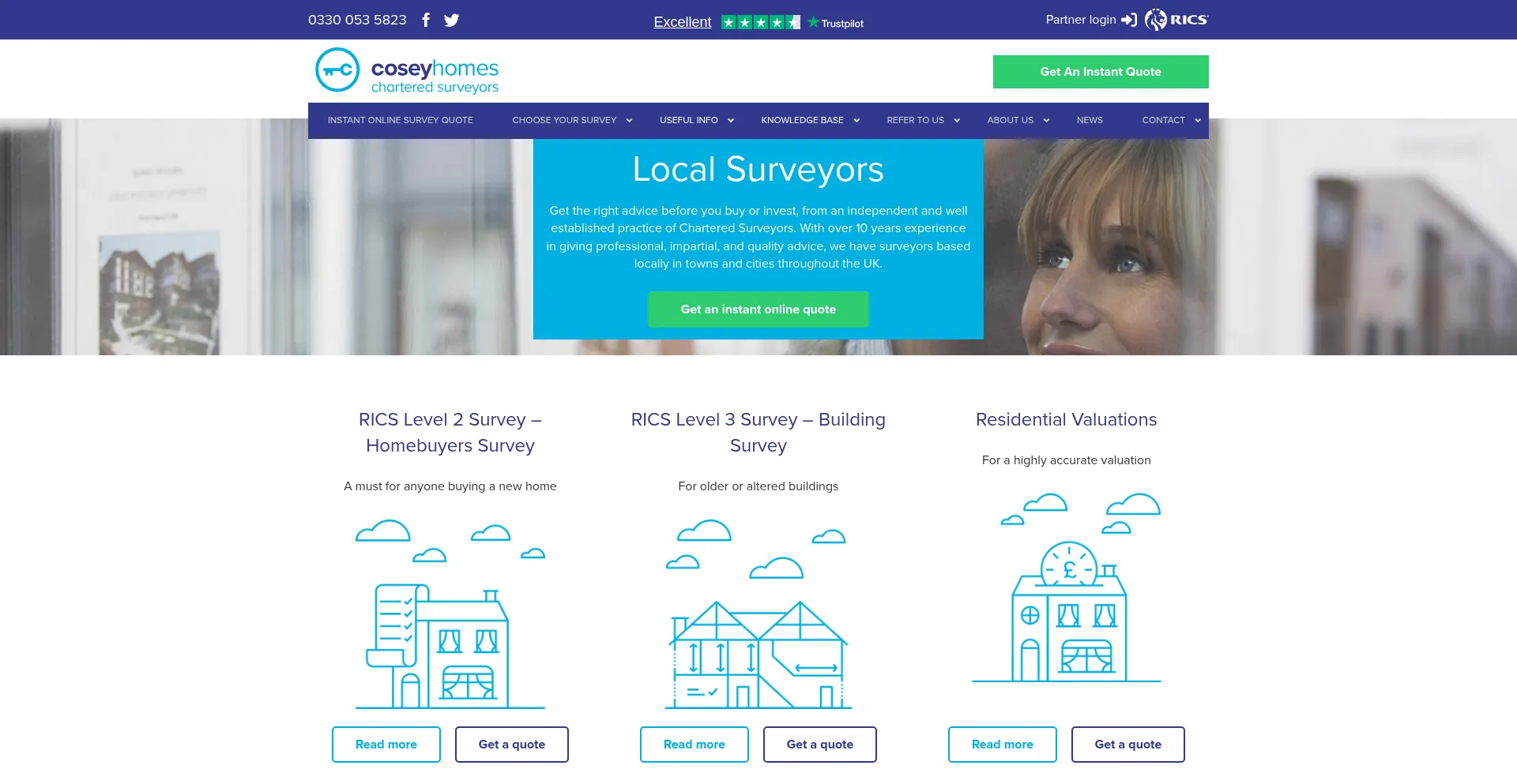 Trusted RICS Chartered Surveyors across the UK, delivering high-quality service & outstanding customer care. Level 1, 2 & 3 property surveys. Get an instant online quote today!