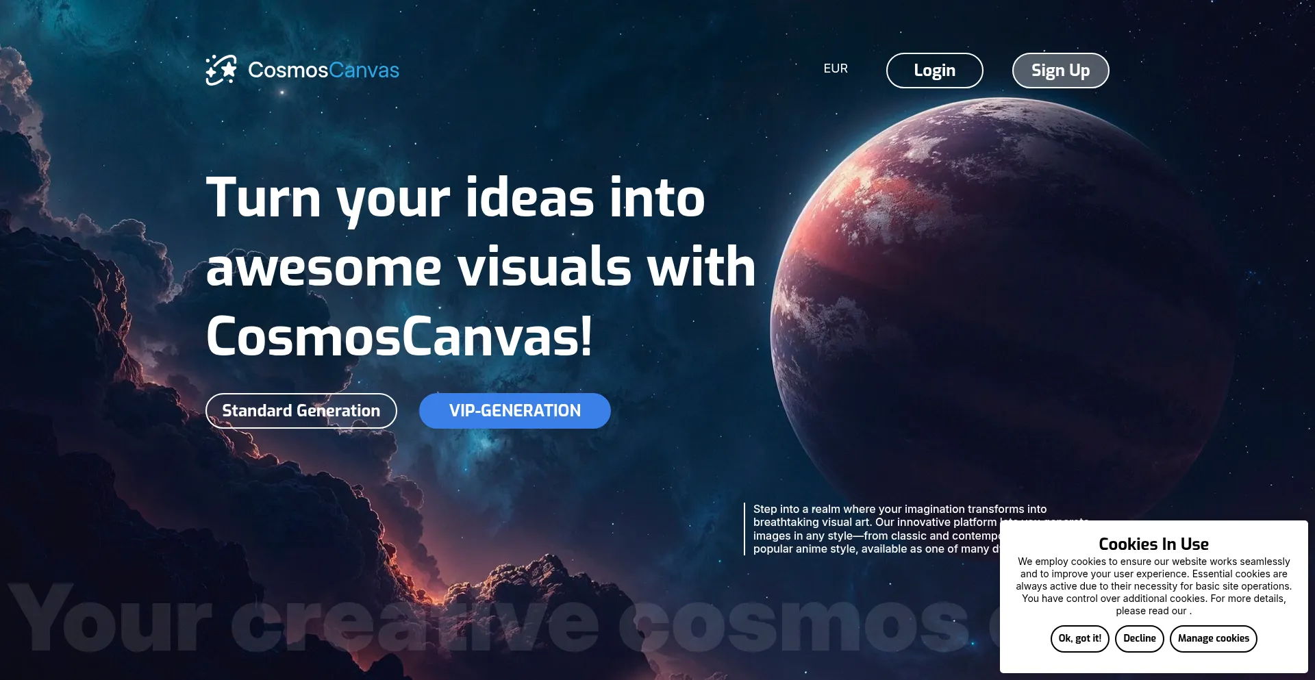 网站上存在社交媒体链接表明 cosmoscanvas.net 在社交媒体上维护官方账户,这是可信度和参与度的积极信号。