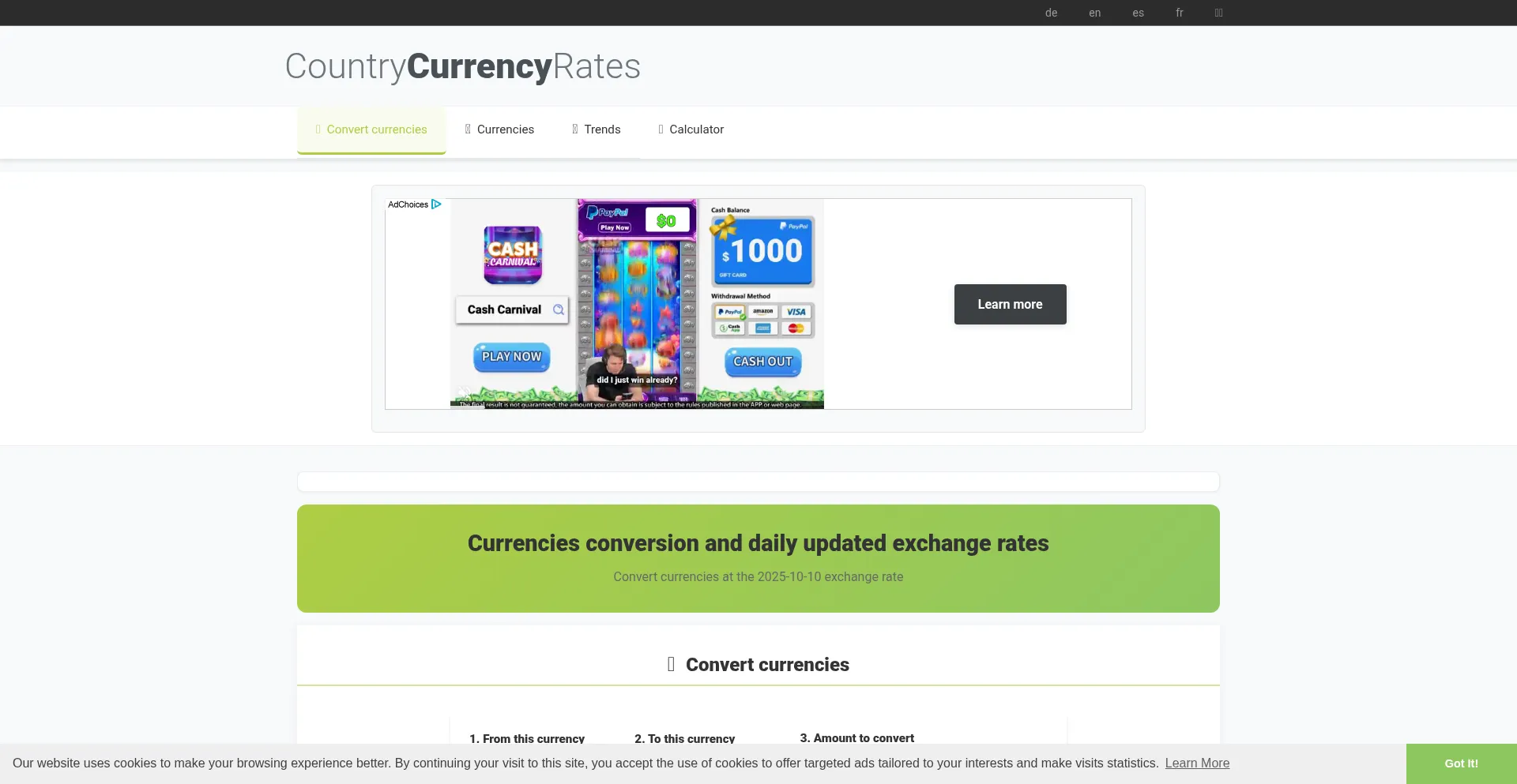 Currencies conversion and daily updated exchange rates - CountryCurrencyRates.com