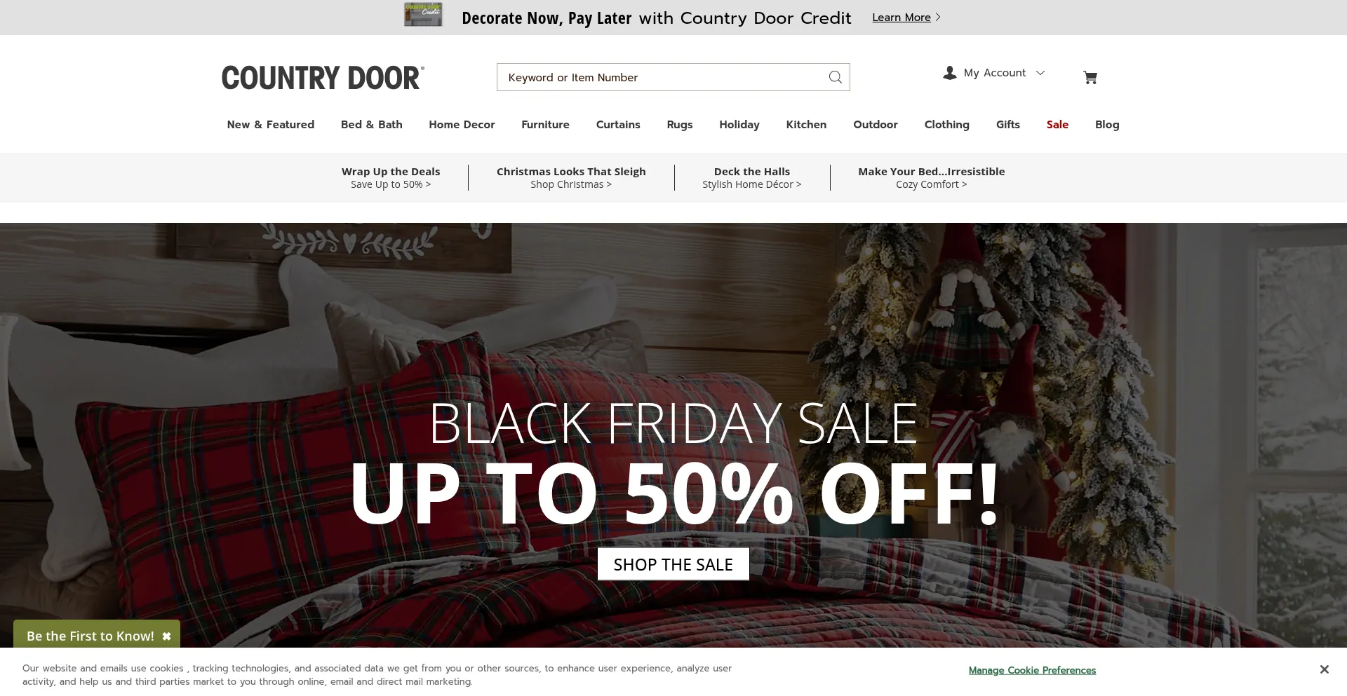 A one-stop shop for farmhouse decorators! You'll love Country Door's rustic décor, furniture, quilts and more...and a Decorate Now, Pay Later credit plan!