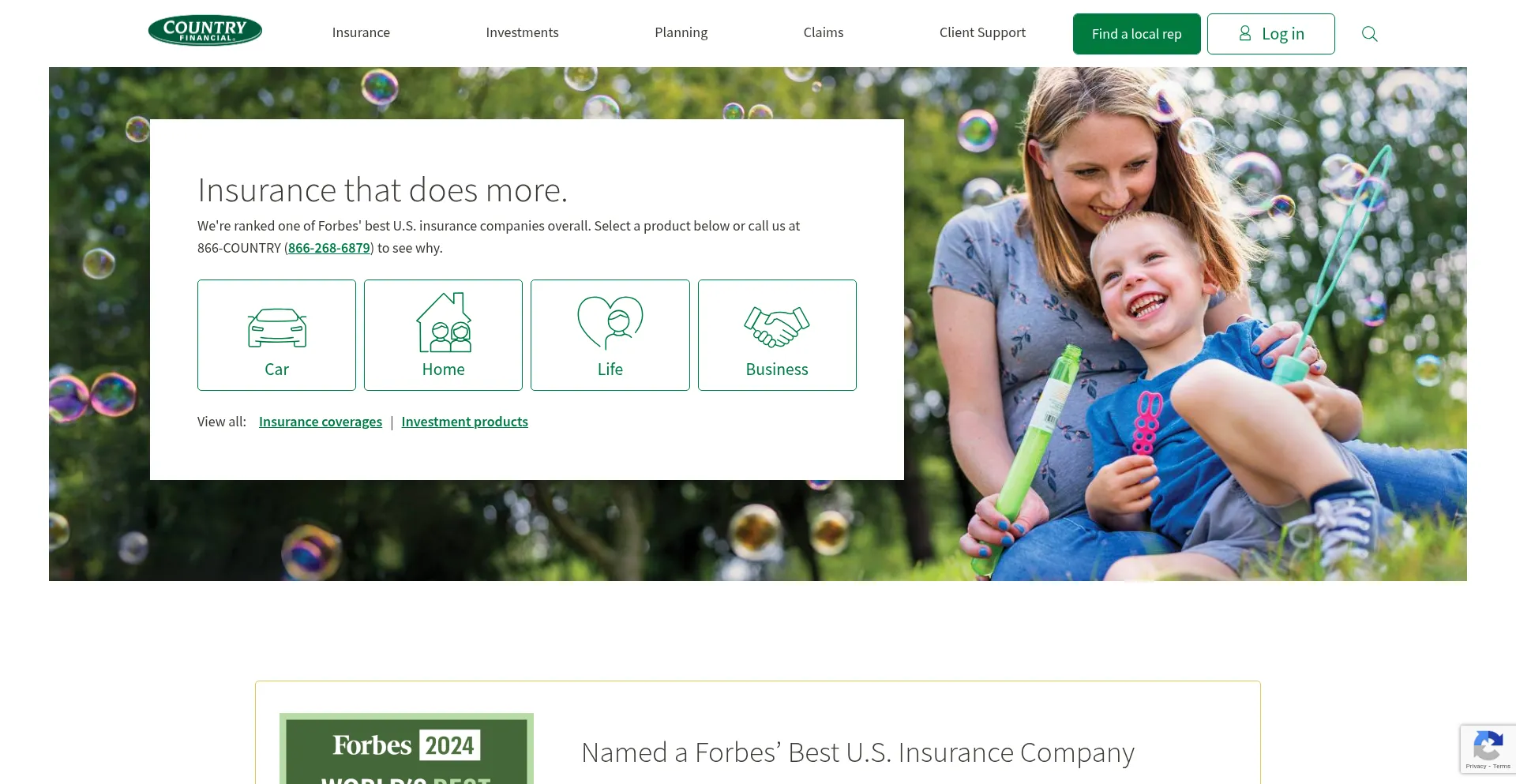 The COUNTRY Financial family of companies offer home and car insurance. Get business, farm, life insurance, and retirement planning from COUNTRY Financial.