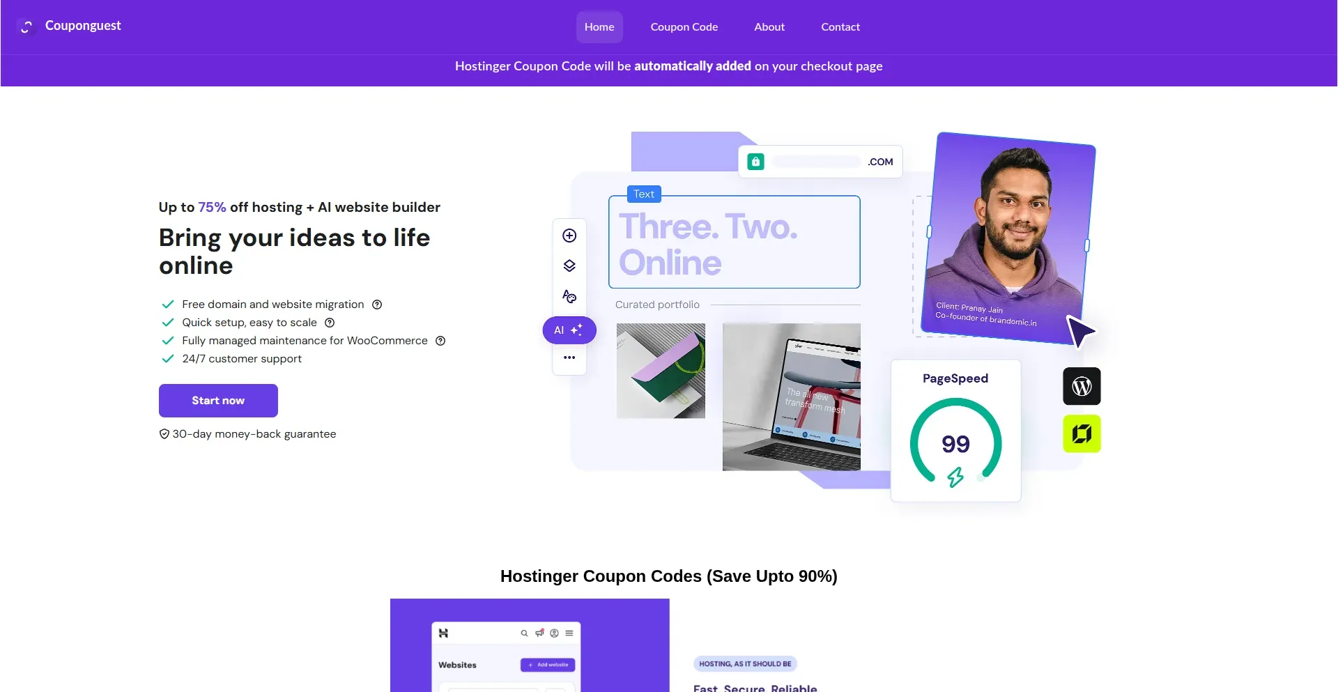 Find the maximum discount on Hostinger plans with Couponhosting coupon codes. Latest offers, why choose Hostinger, and how to save more.