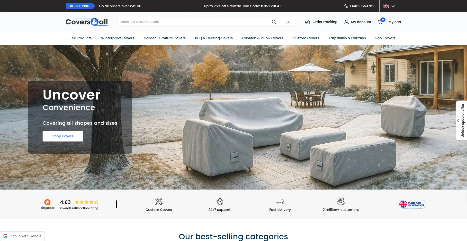 分析表明 coversandall.co.uk 作为电子商务平台运营,促进商品或服务的在线交易。该网站实现了购物车功能、支付处理系统和产品目录功能,这些是商业零售运营的典型特征。