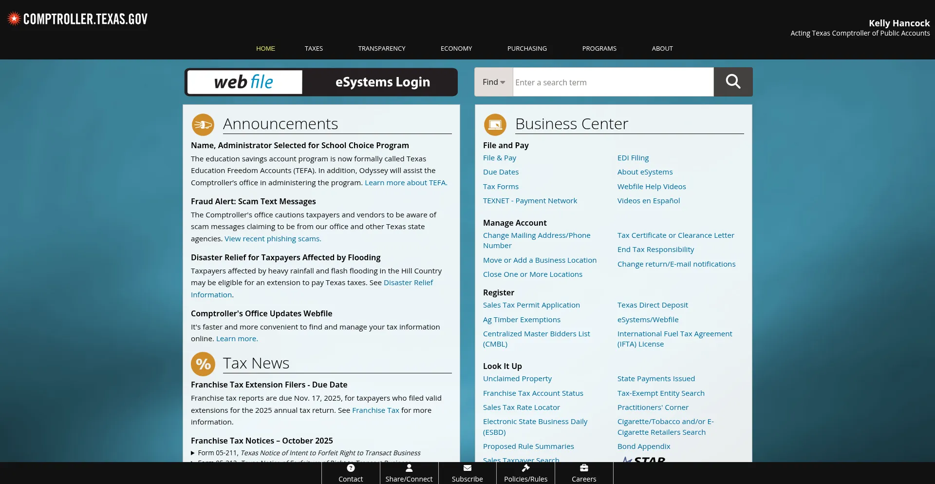 Comptroller.Texas.Gov is the website for the Texas Comptroller of Public Accounts