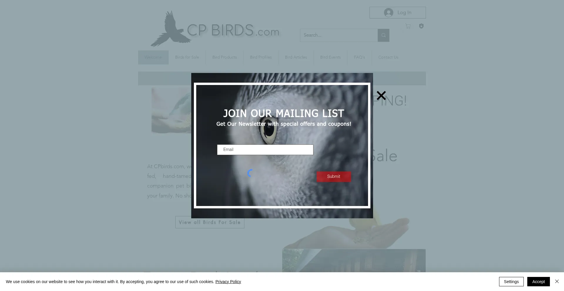 At CPbirds.com, we are dedicated to providing hand-fed, hand-tamed, and socialized high-quality companion pet birds that integrate seamlessly into your family. No shortcuts, gua...