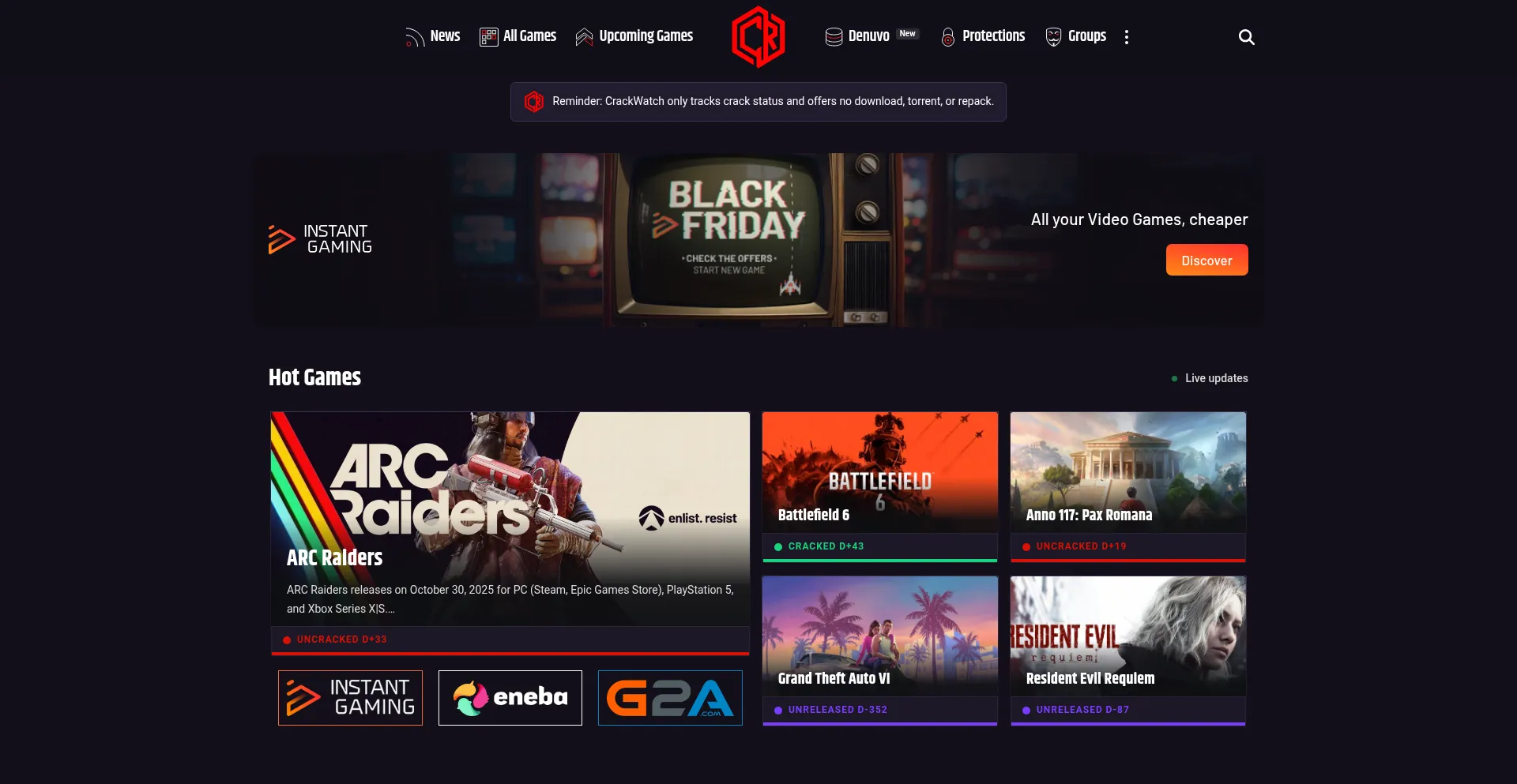 Search and browse PC game crack status on CrackWatch with instant, accurate results. Track DRM changes and recent updates easily.