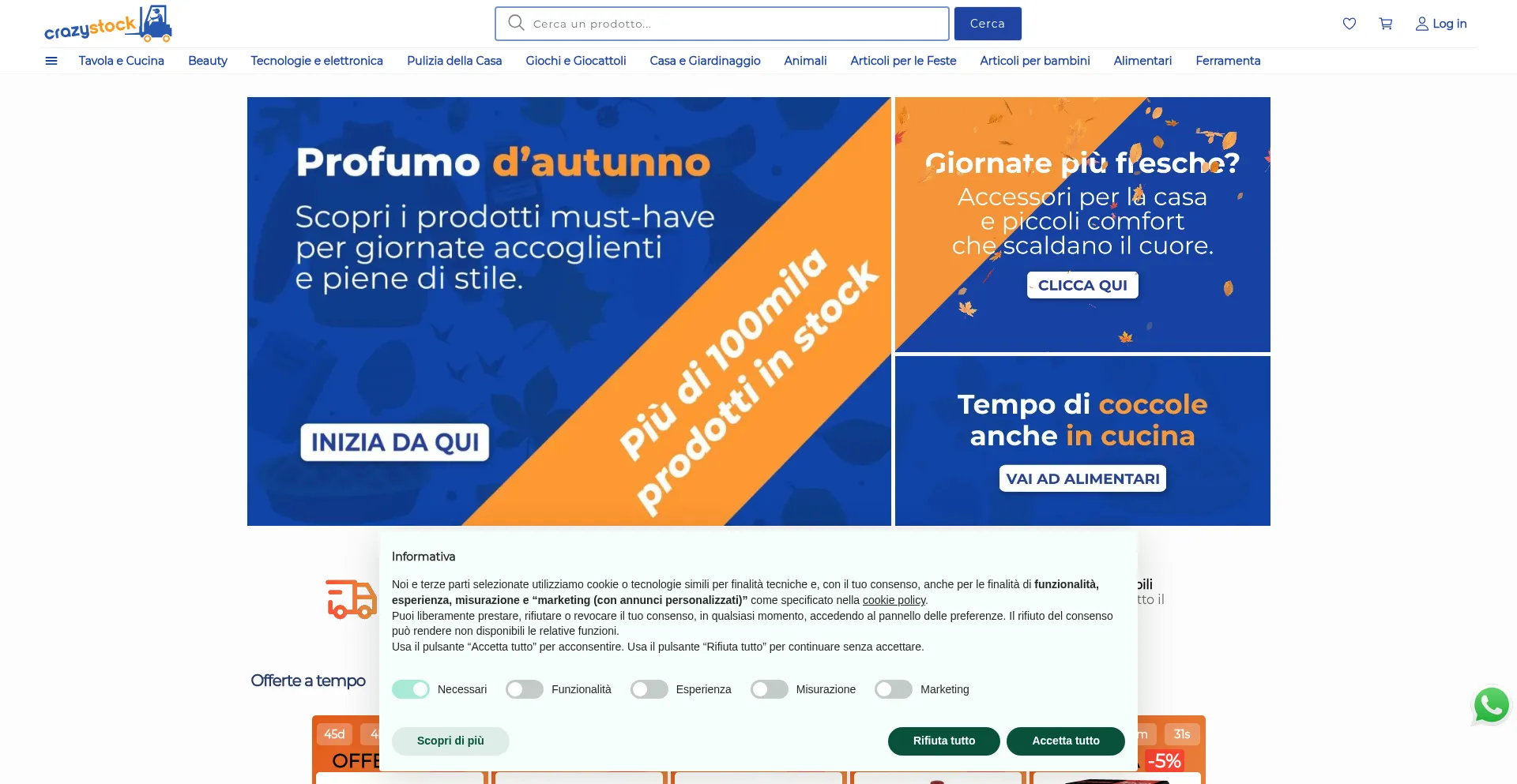 CrazyStock è il sito che unisce qualità e risparmio! Qui trovi una vasta selezione di prodotti in stock a prezzi da ingrosso. Scopri la nostra gamma di articoli!