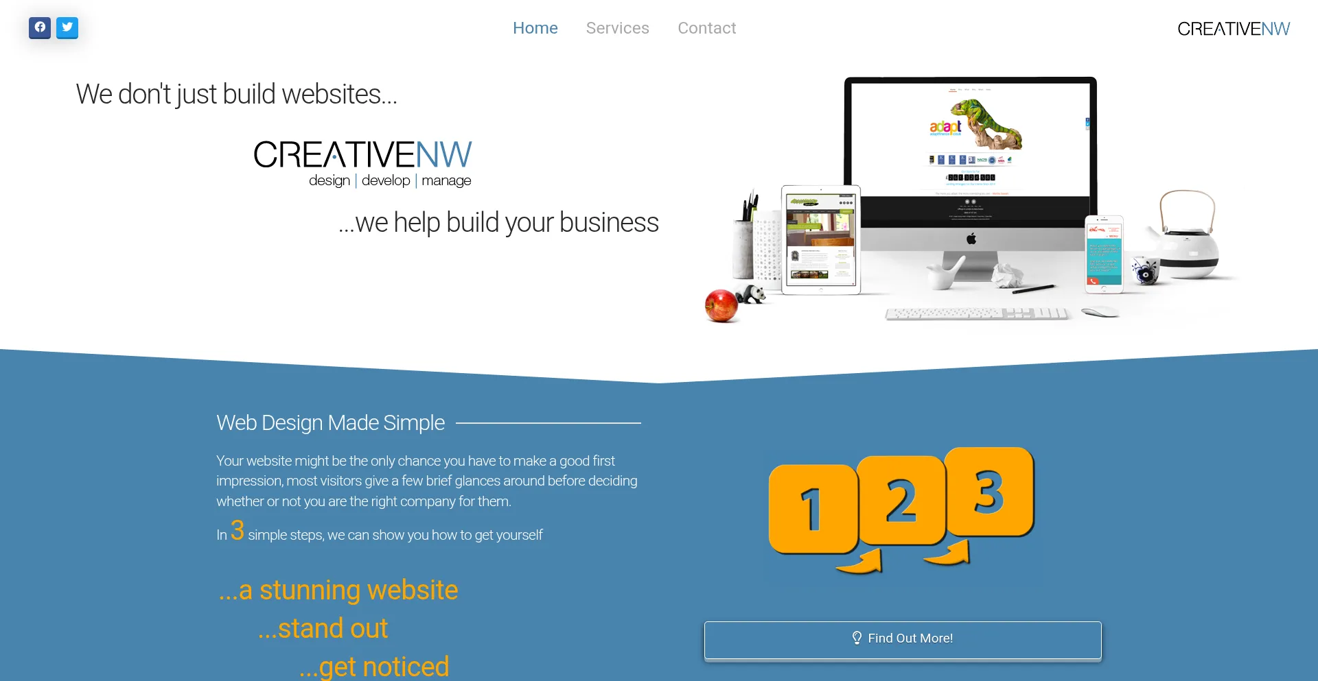 网站上存在社交媒体链接表明 creativenw.co.uk 在社交媒体上维护官方账户,这是可信度和参与度的积极信号。