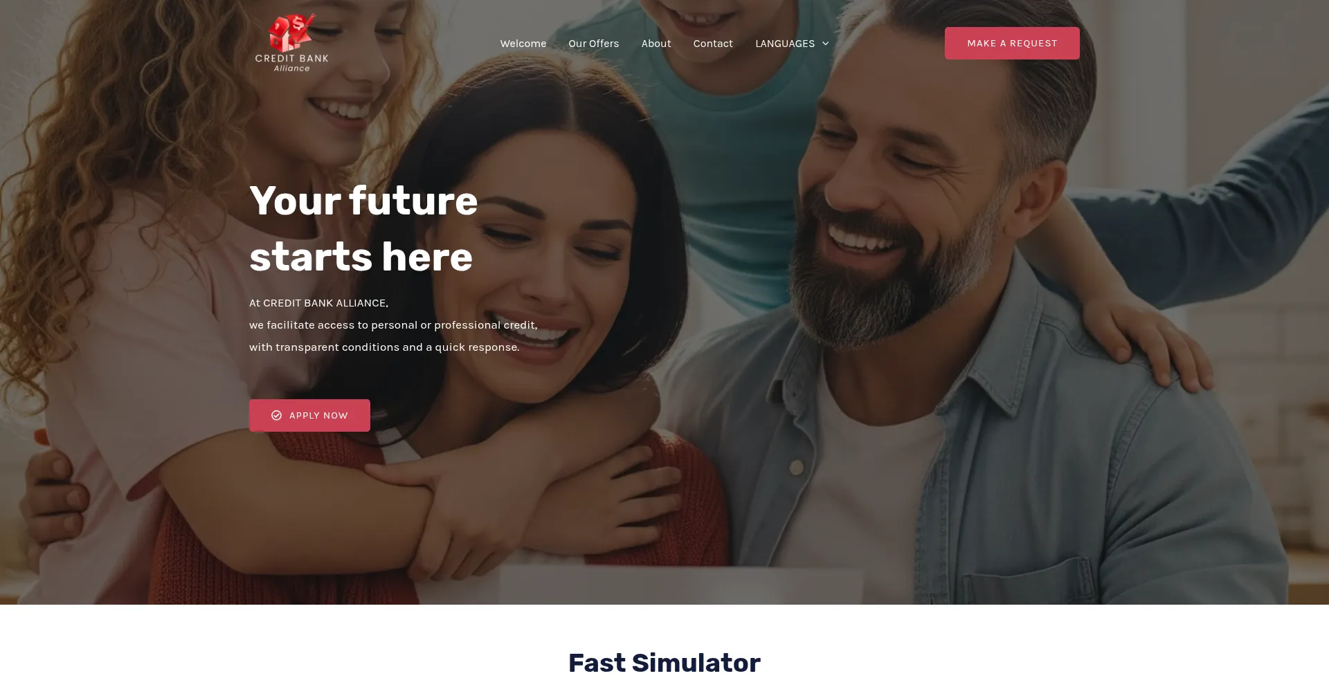 Your future starts here. At CREDIT BANK ALLIANCE, we make personal and business loans easily accessible, with transparent terms and a fast response. Apply now. Quick simulator: ...