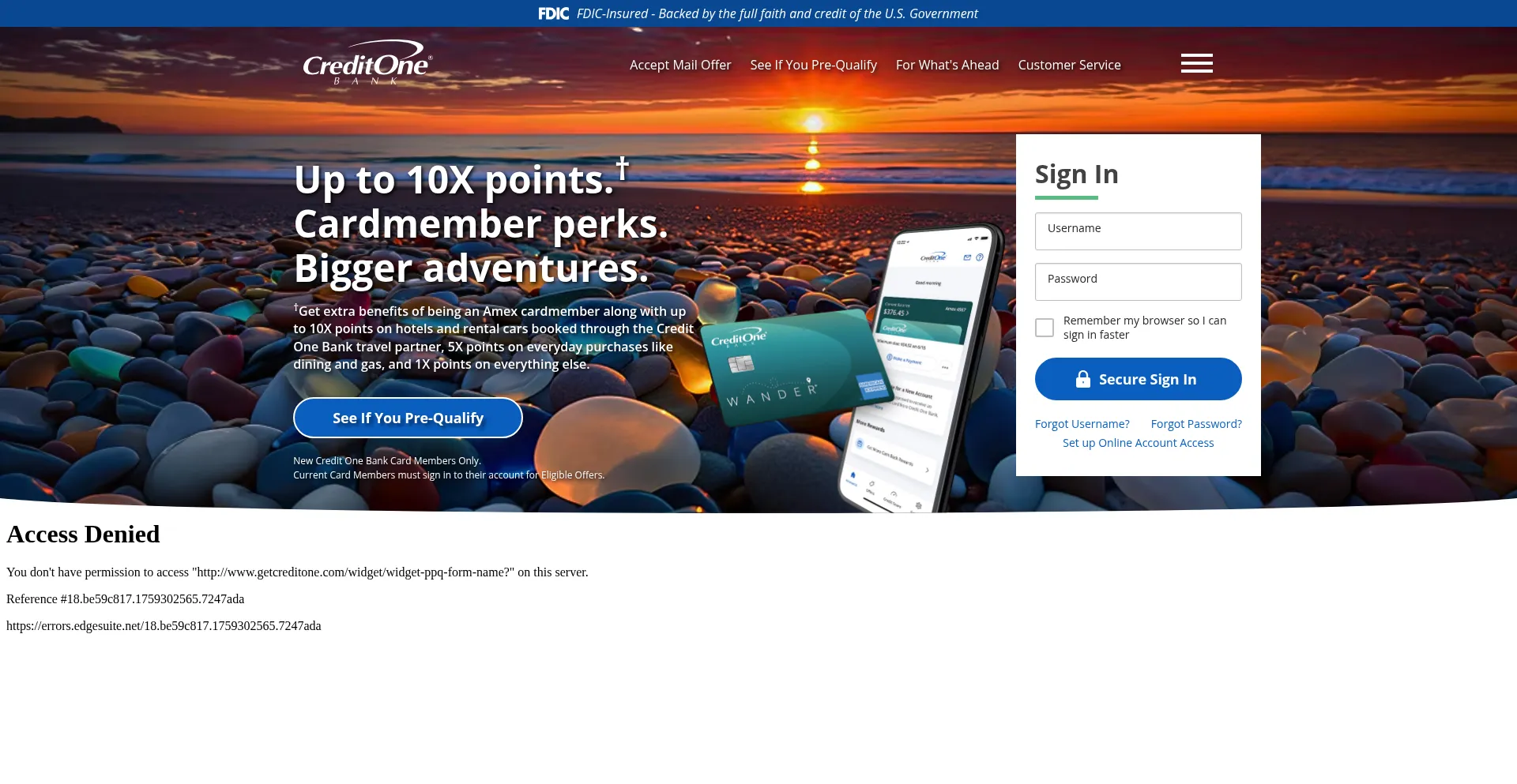 Sign In to Pay Your Bill OR See if You Pre-Qualify for a Credit Card | Credit One Bank