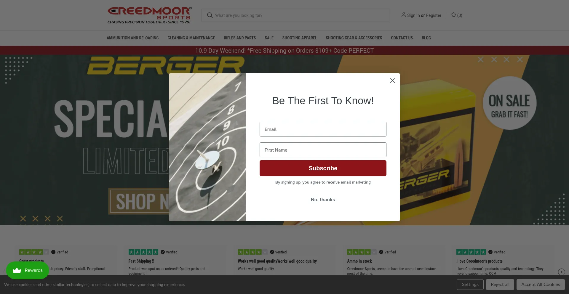 Shoot and Reload with the Pros! Creedmoor Sports has served the Precision Shooting Community for over 40 years in Centerfire, Small-bore, Air Rifle and Pistol Disciplines.