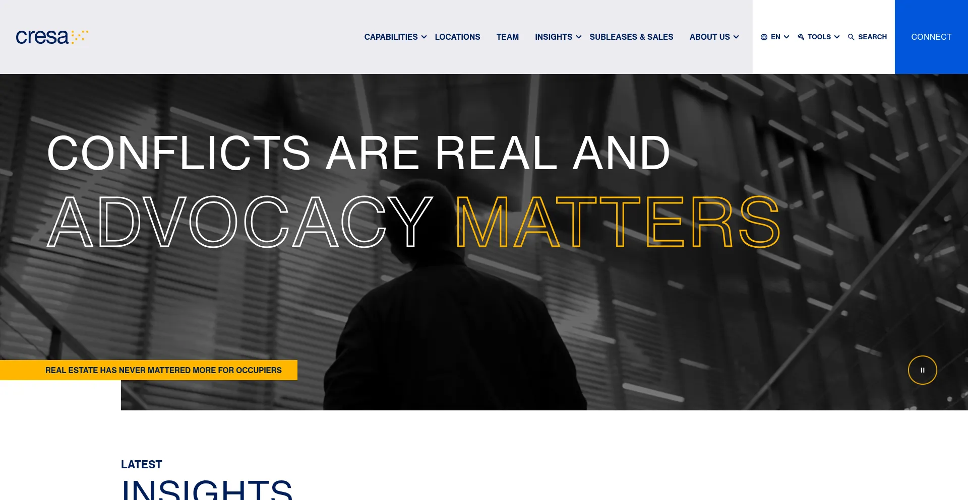 网站上存在社交媒体链接表明 cresa.com 在社交媒体上维护官方账户,这是可信度和参与度的积极信号。