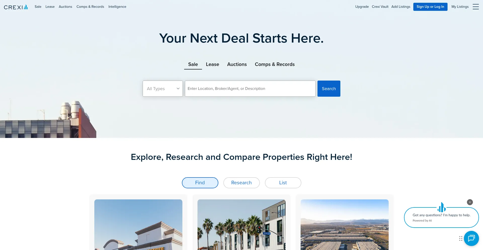 Buy, sell, or lease commercial real estate, including retail, office, industrial & multifamily properties all over the U.S. Visit Crexi.com to get started.